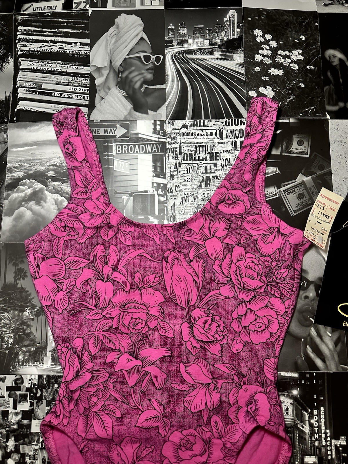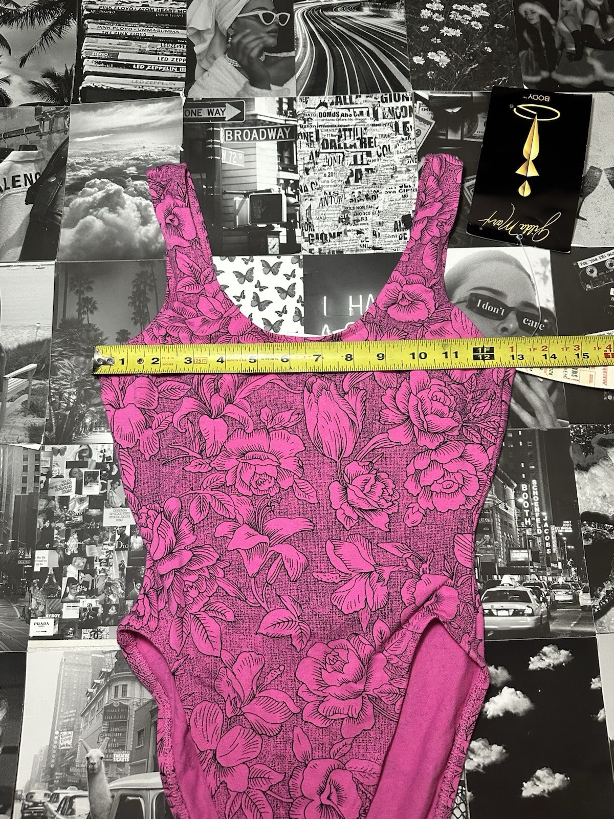 NWT Vintage Gilda Marx 80s Leotard Sz S Pink Floral High Cut High Cut Flexatard
