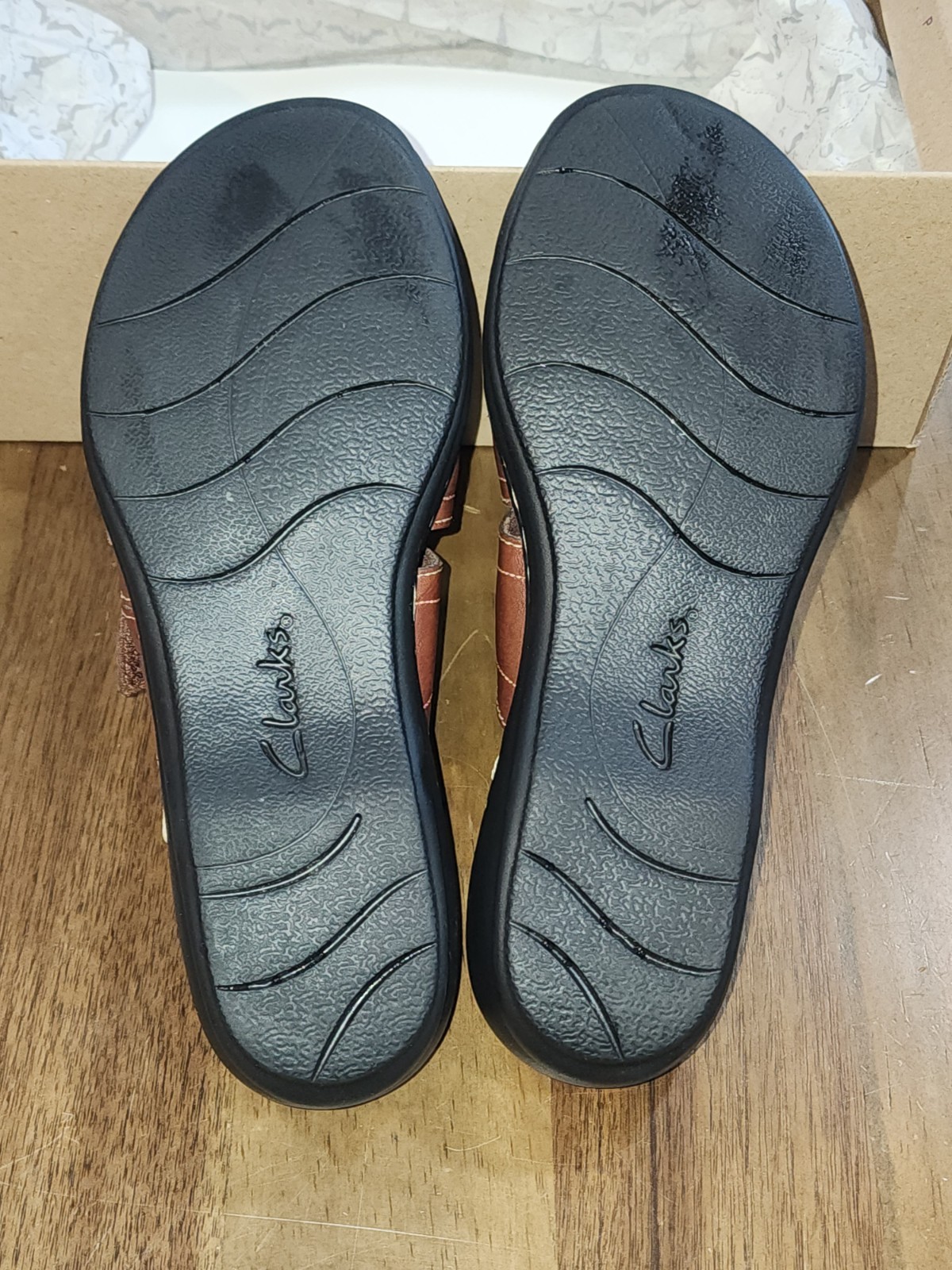 как выглядит Clarks Leisa Broach Brown Leather Slide Sandals Sz 6.5 M Adjustable Strap фото