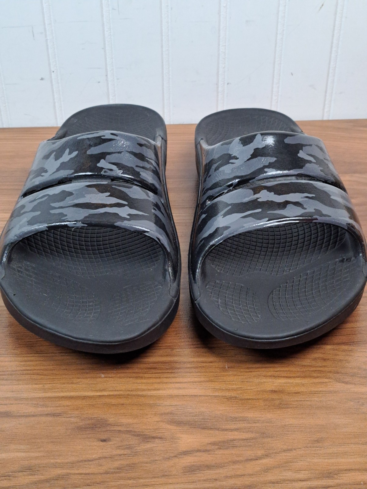 OOFOS OOahh Sport Flex Slide Recovery Sandals Black/Gray Camo M8/W10 EU 41