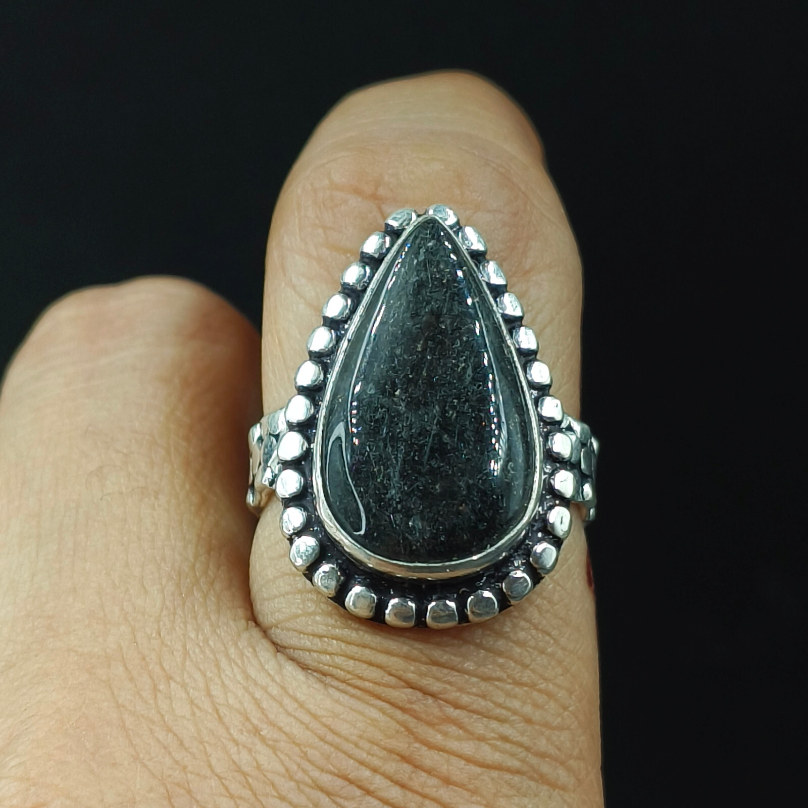 как выглядит Natural Azurite Quartz Pear Gemstone 925 Sterling Silver Adjustable Ring фото