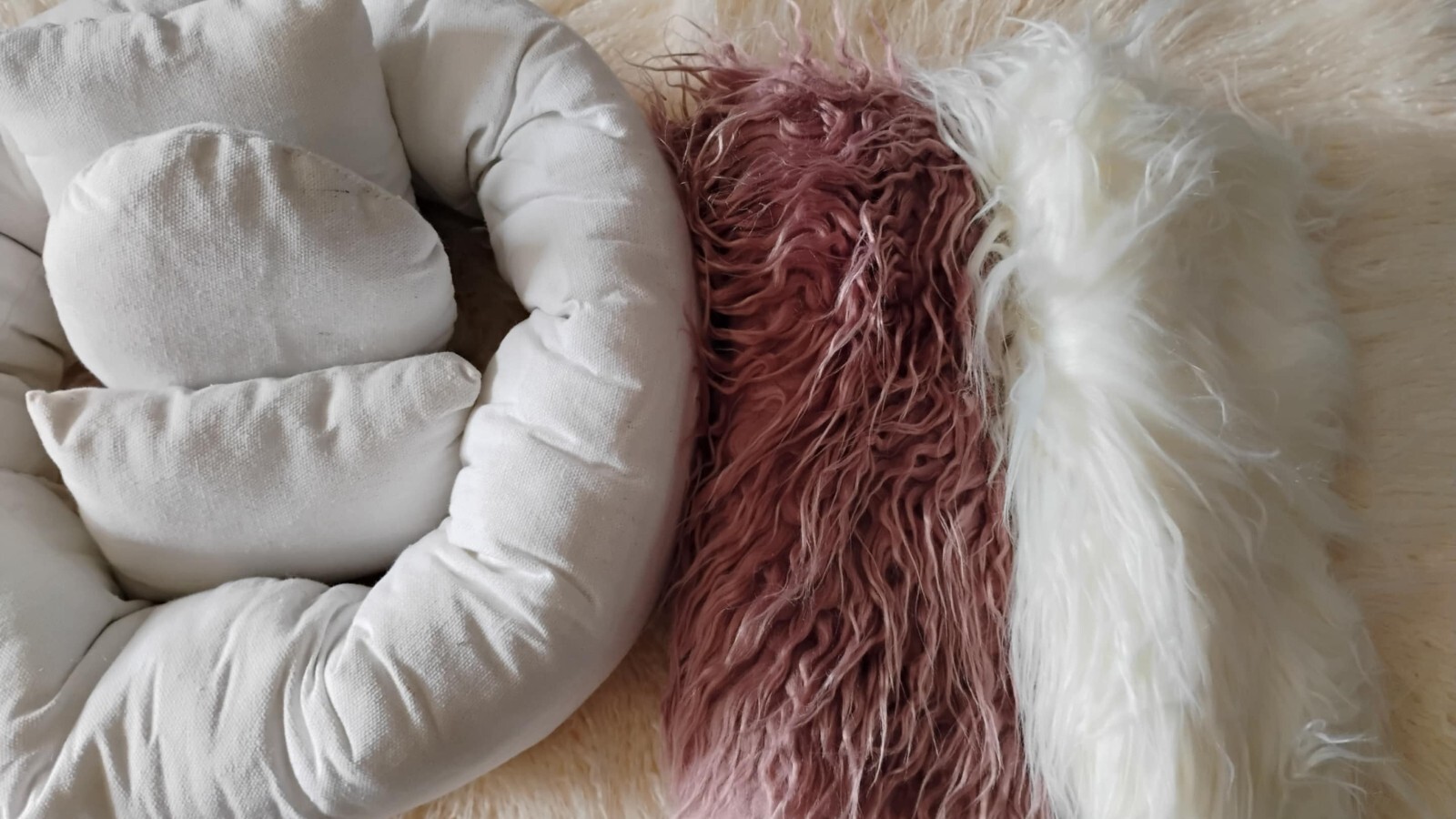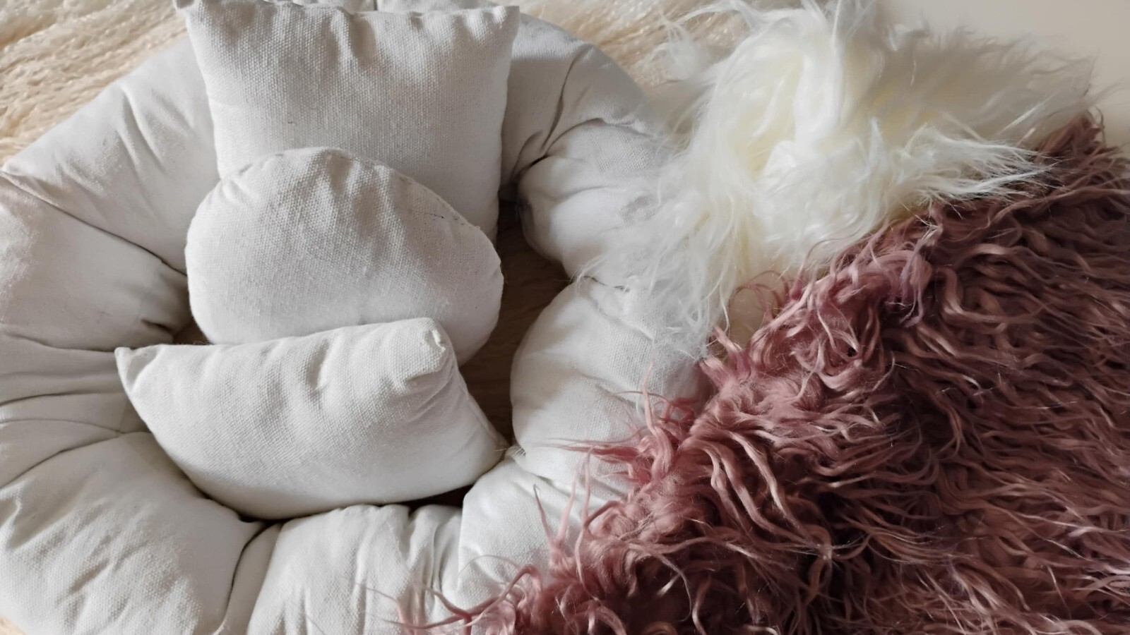 как выглядит Newborn Baby Posing 4-Pillow Set- New Props and 2 fur blankets фото
