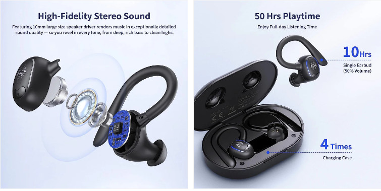 Over-Ear Headphones Wireless Earbuds 60hrs Playback IPX7 Waterproof Earphones