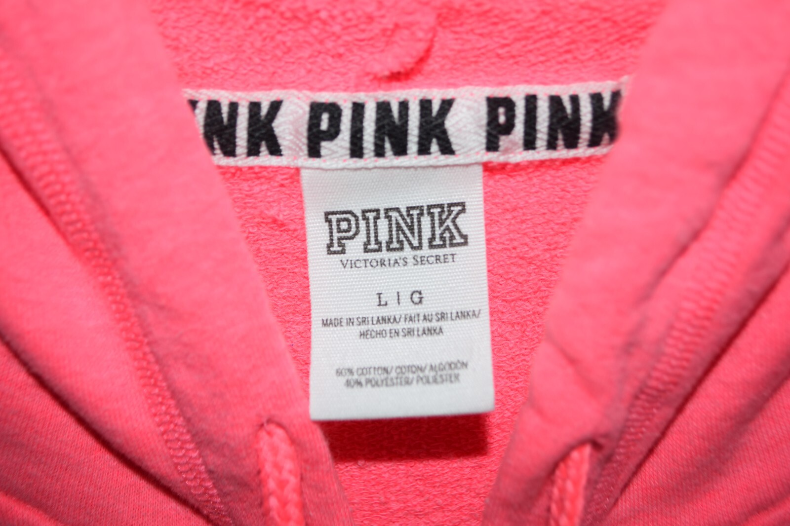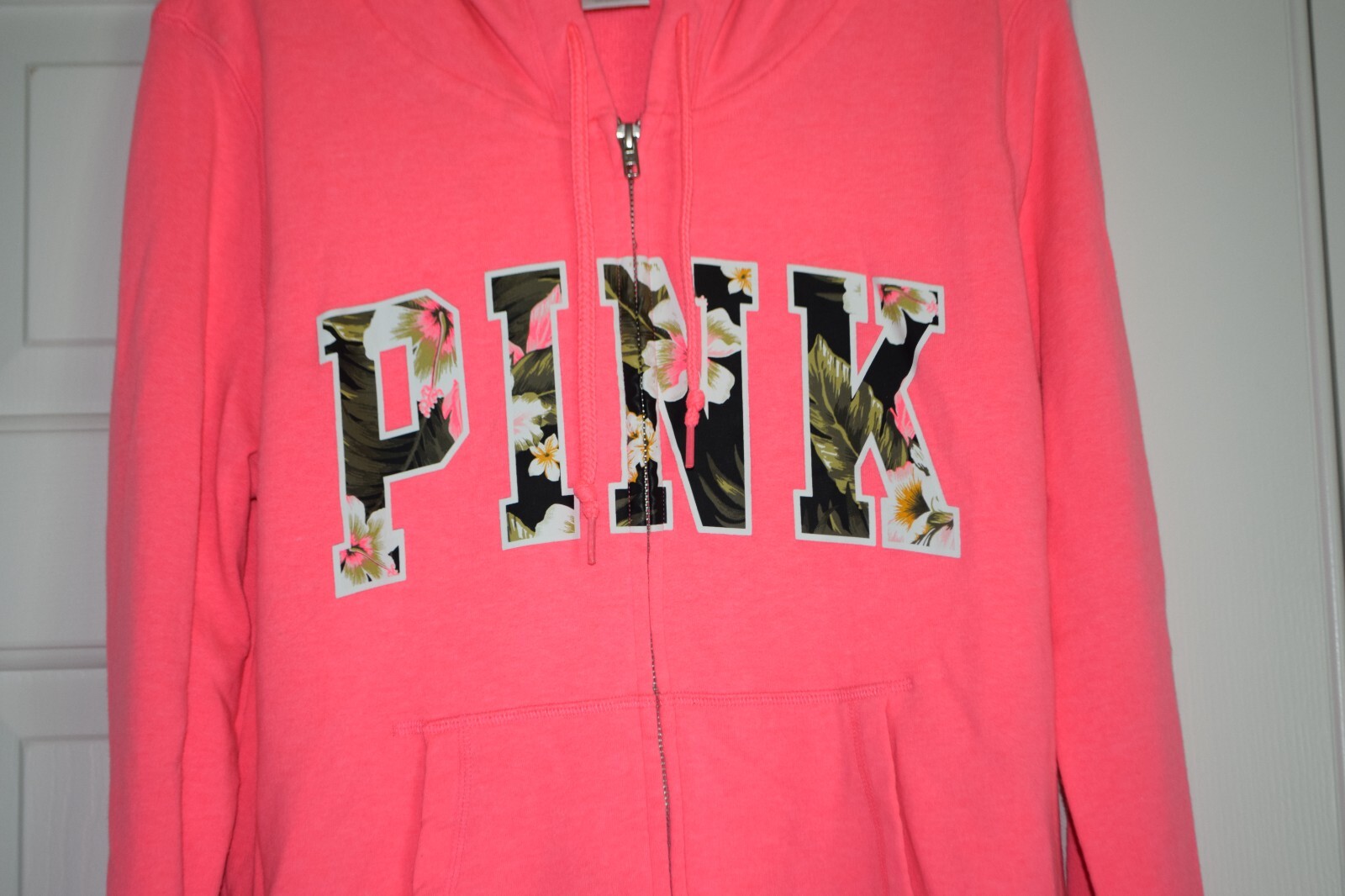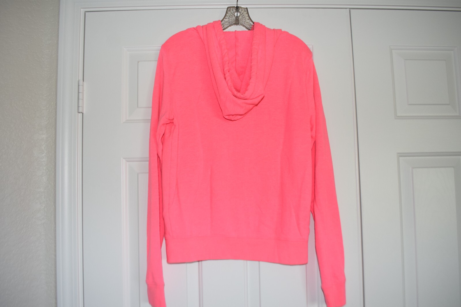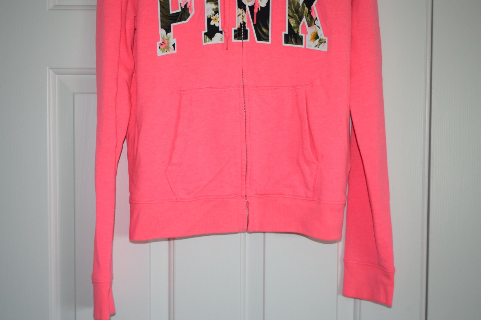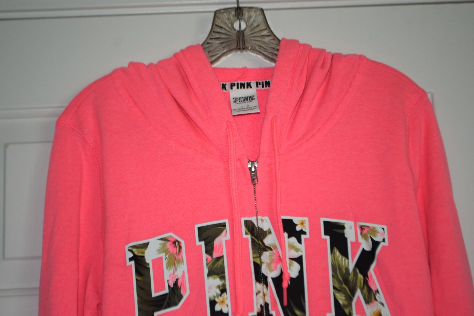 как выглядит Victorias Secret PINK Size L Neon Pink Zipper Front Hoodie Jacket Flower Design фото