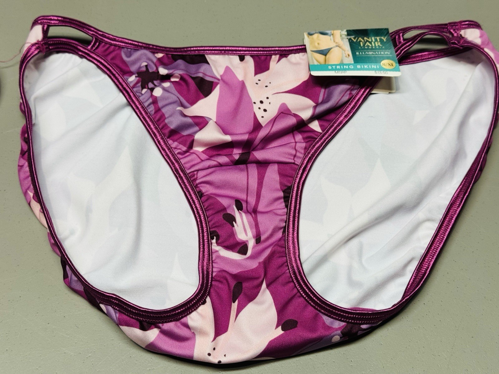 как выглядит 3-Vanity Fair Illumination String Bikini Panties 18108 Hi-Cut Sz 8/XL Asst Color фото