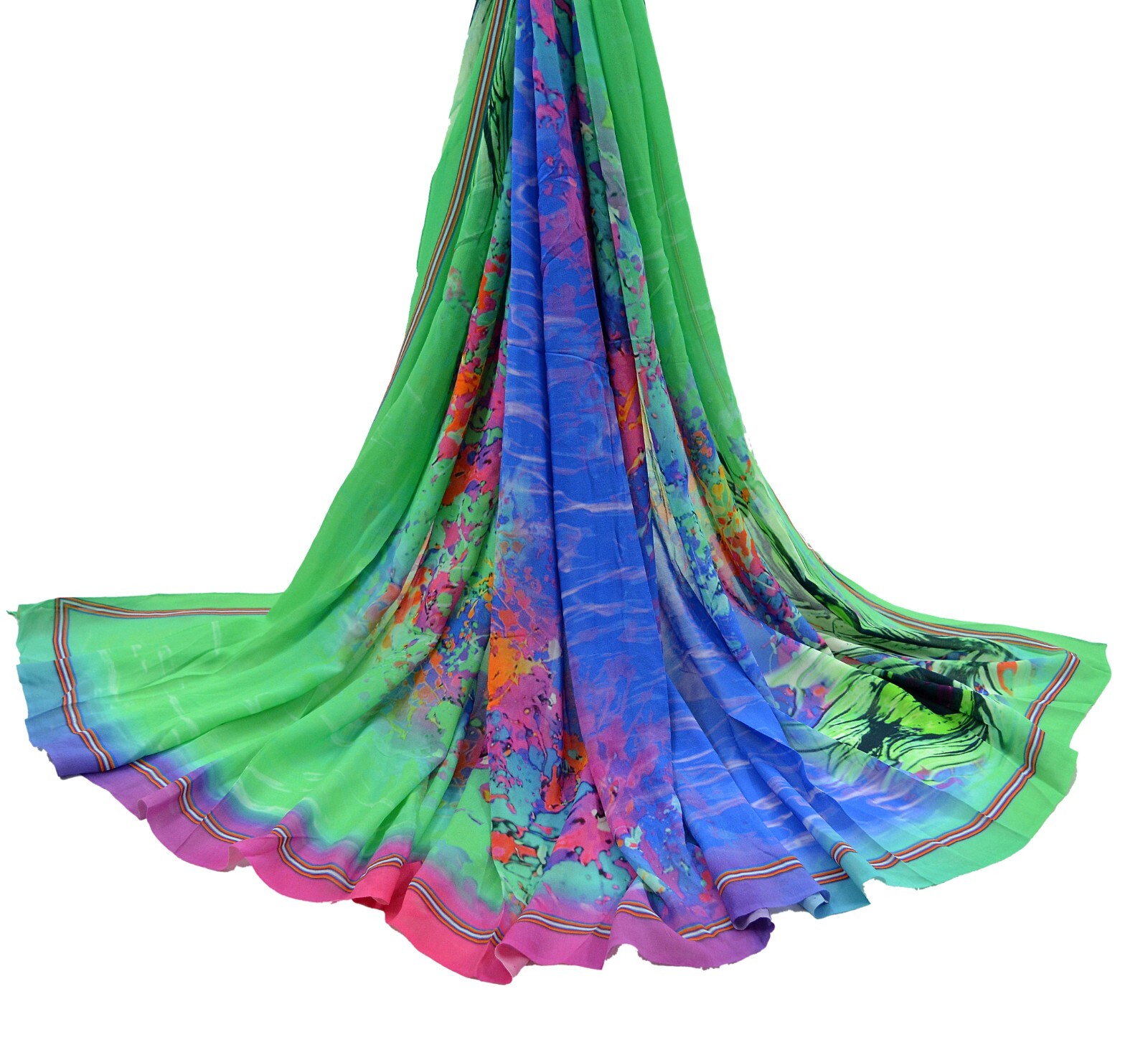 Vintage Green Blue Dupatta Long Stole Pure Georgette Silk Digital Printed Veil