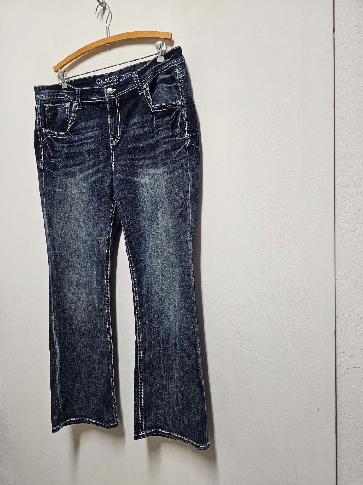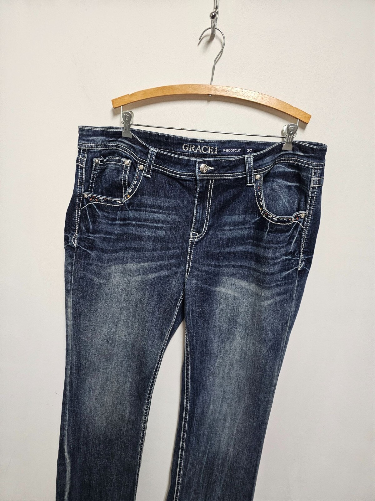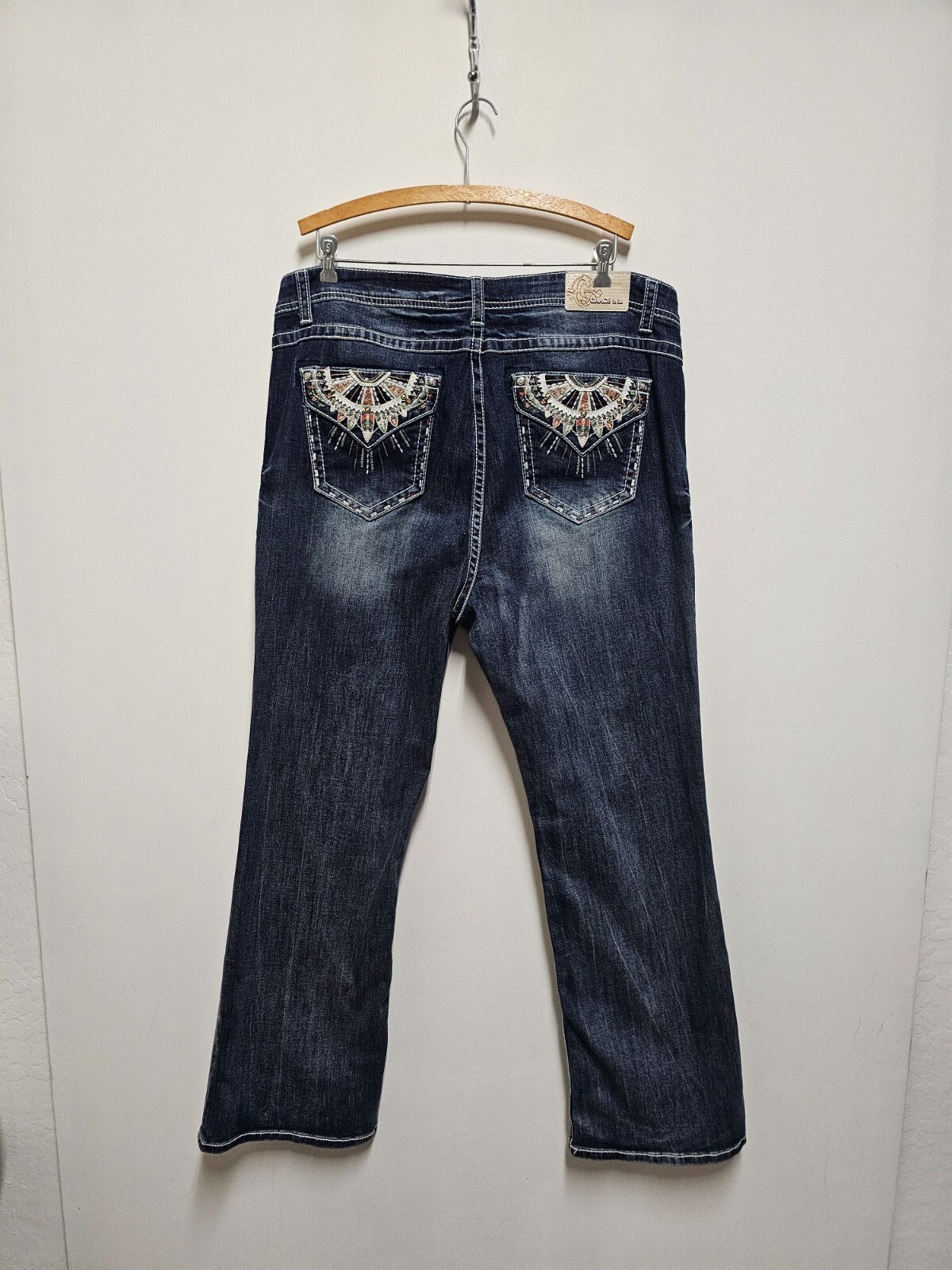 Grace in La Women's Western Crystal Embroidered Bootcut Stretch Jeans Size 20