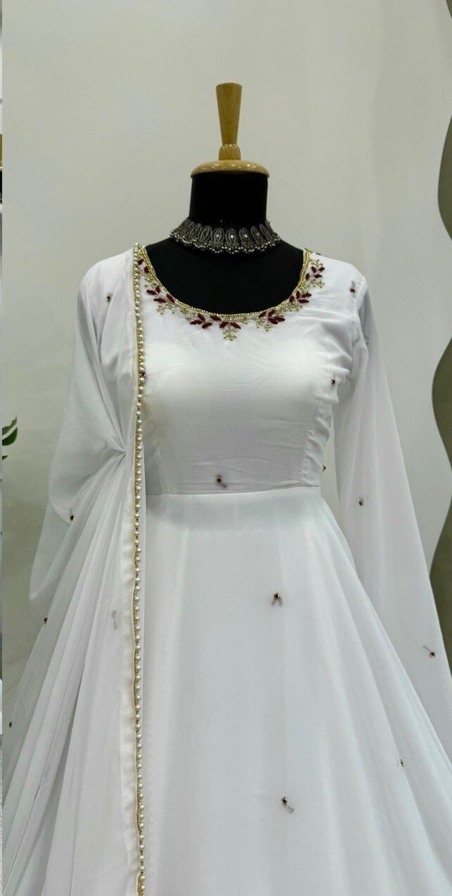 как выглядит Bollywood Look Faux Georgette White Gown Bottom With Dupatta For Festival Wear фото
