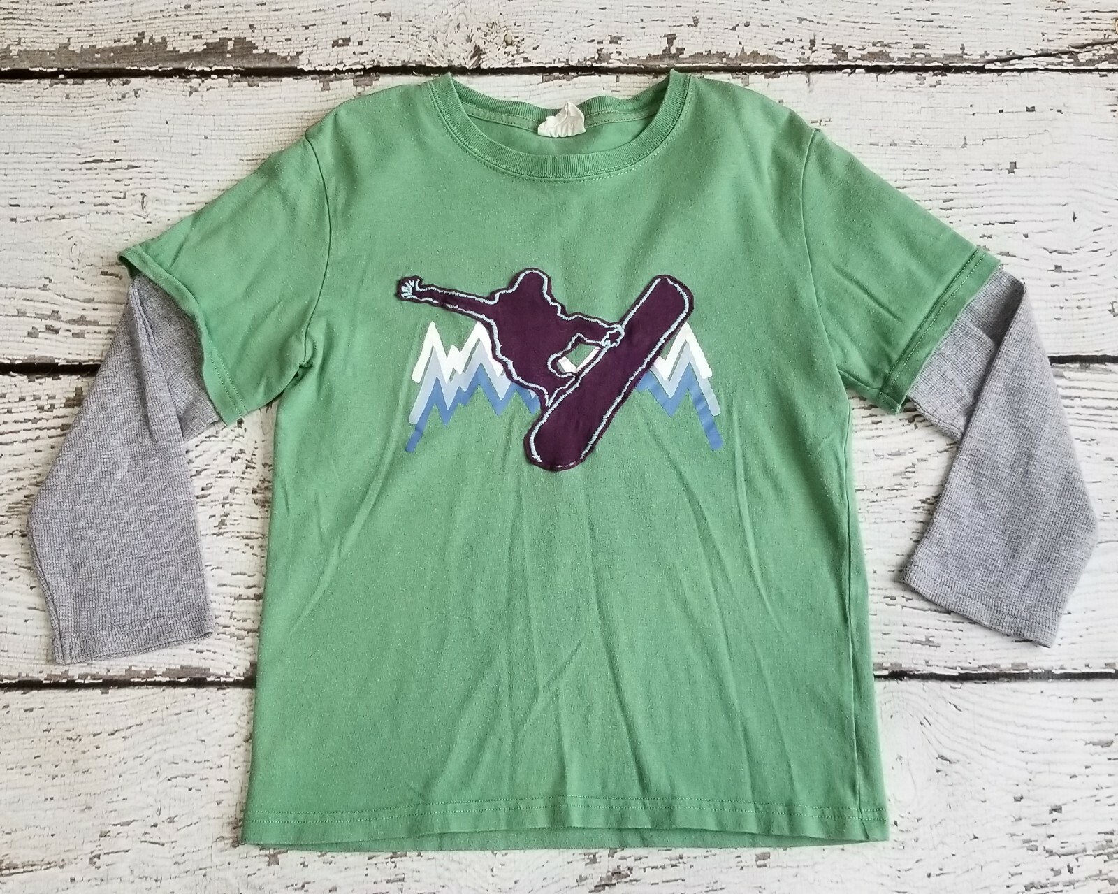 как выглядит MINI BODEN 7 8 Boys Green Snowboard Applique Tee and Plaid Tartan Pants 7 8 фото