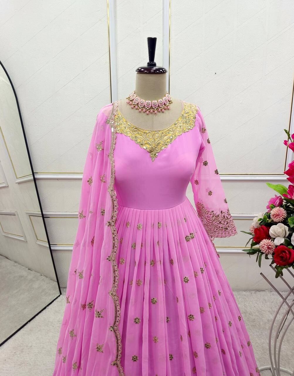 как выглядит Exclusive Look Faux Georgette Light Pink Gown Bottom With Dupatta For Festival фото