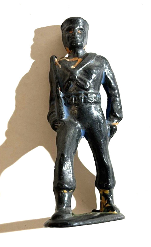 • 4 LEAD FIGURINES 1940'S BARCLAY MAMOIL: POLICEMAN, PORTER, SOLDIERS