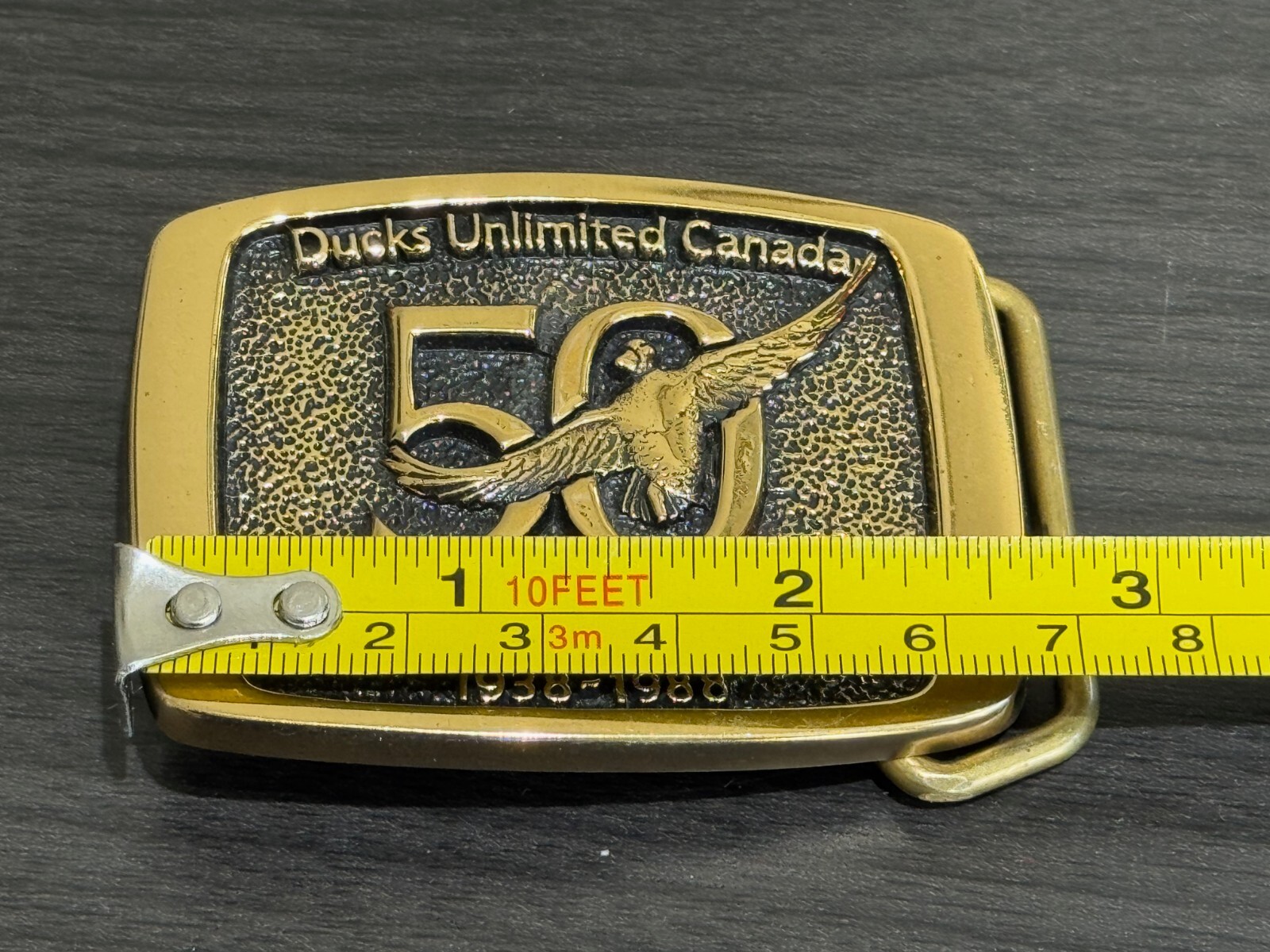 VG Ducks Unlimited Canada 50 Years of Conservation 1988 Brass Belt Buckle 2.5