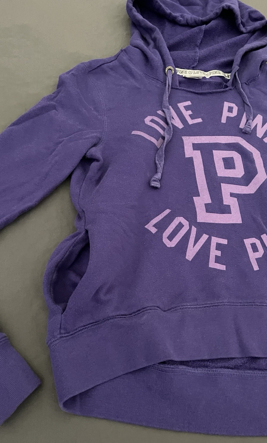 как выглядит Victorias Secret Pink Hooded Sweater Sweatshirt Womens XS Purple Long Sleeve фото