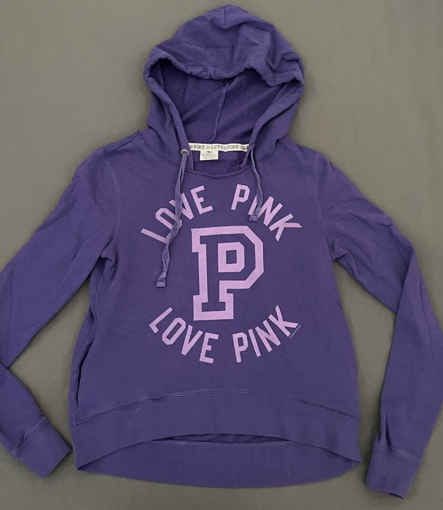 Victoria's Secret Pink Hooded Sweater Sweatshirt Womens XS Purple Long Sleeve