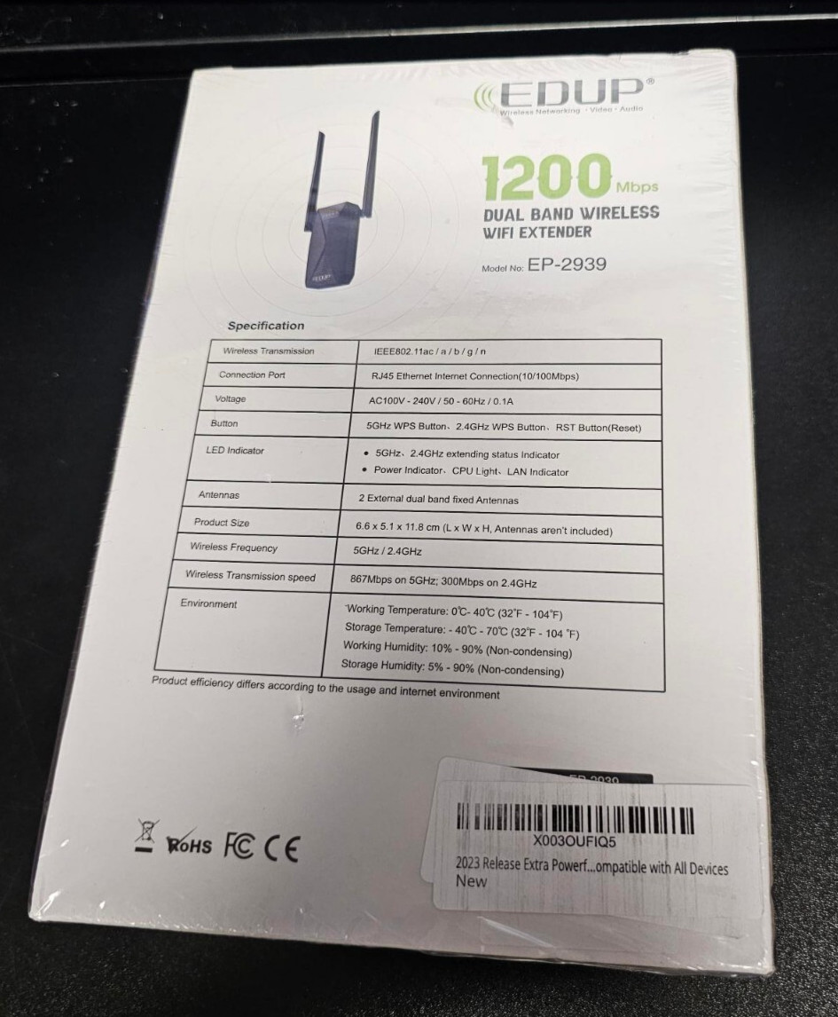EDUP 1200 MBPS Dual Band Wireless WiFi Extender 1200 MBPS EP-2939