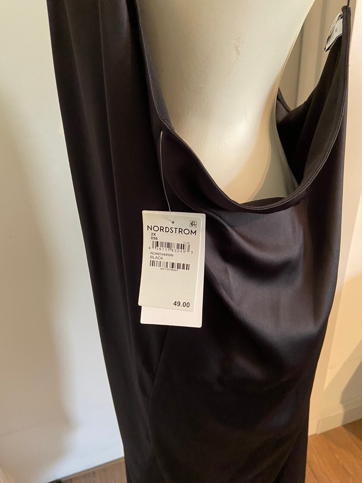 NWT Nordstrom Satin Chemise Black Midi V-Neck Y Back - Size 2X