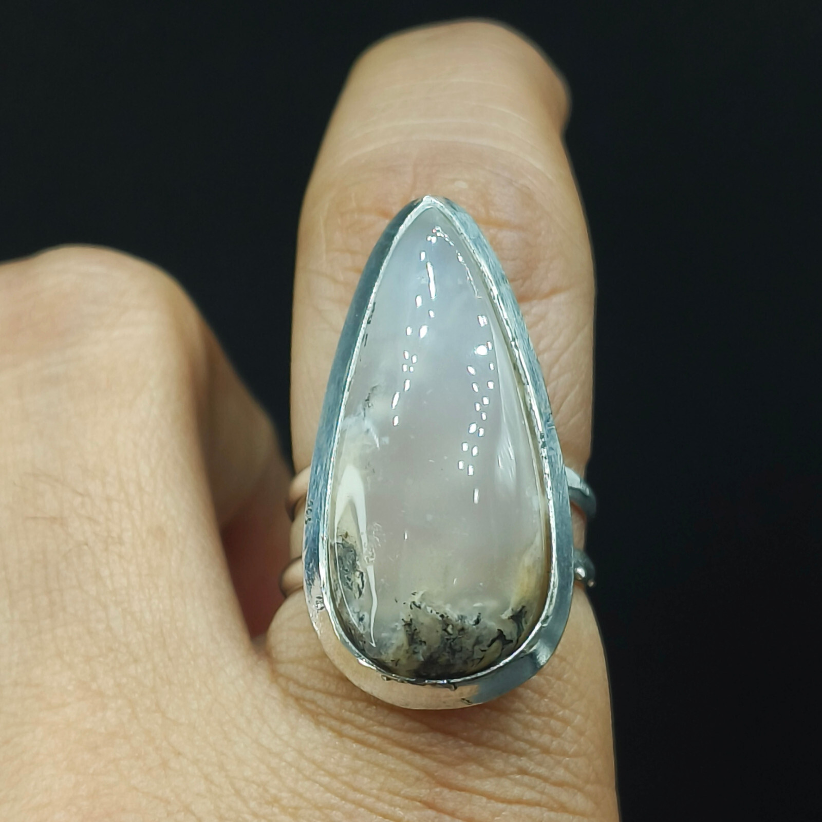 как выглядит Natural Moss Agate Pear Gemstone 925 Sterling Silver Ring Size-7.75 US фото