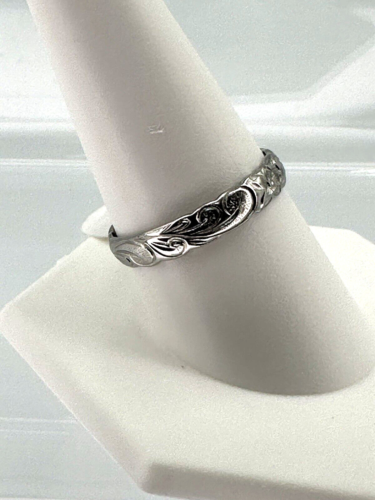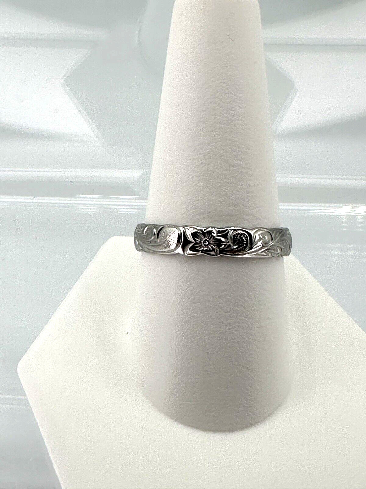STERLING SILVER HAWAIIAN PLUMERIA FLOWER SCROLL 4MM BAND RING