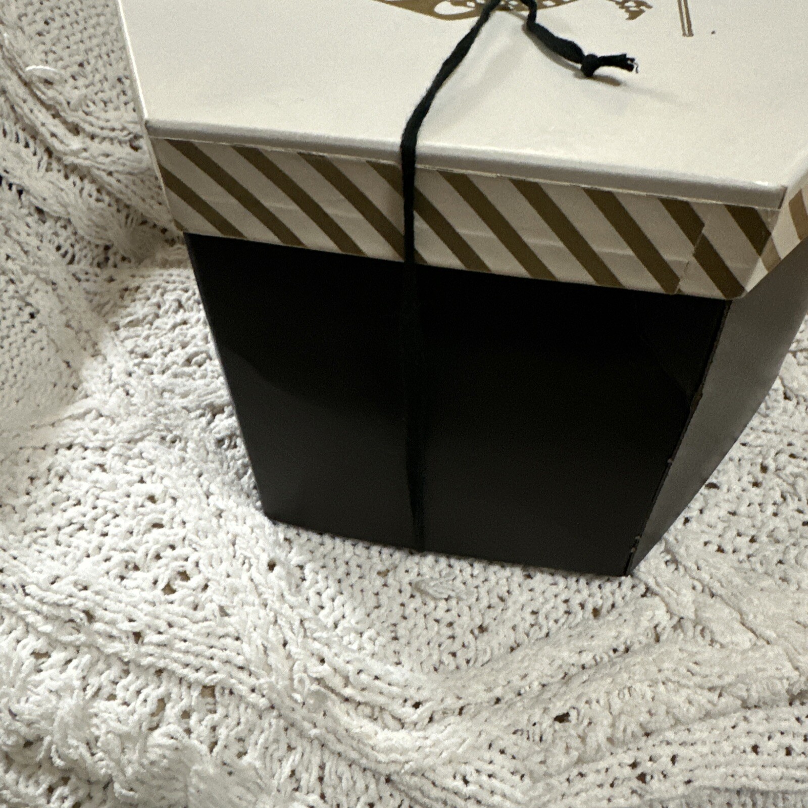 как выглядит Vintage 1950s Hat Box Hexagonal Cardboard White Gold Black фото