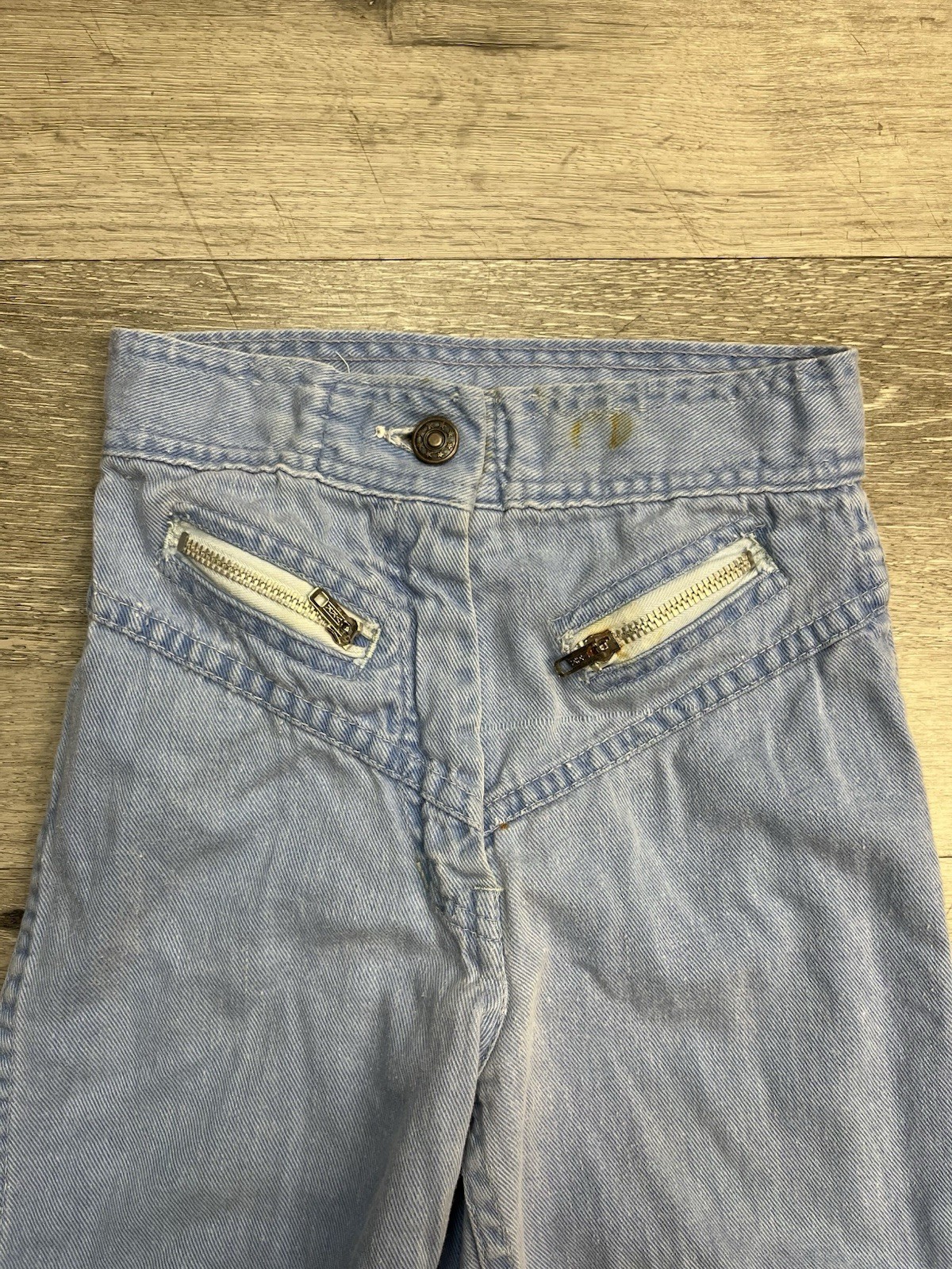 Vintage 1970s Blue Multi Zipper High Rise Super Bell Bottom Jeans Size 8