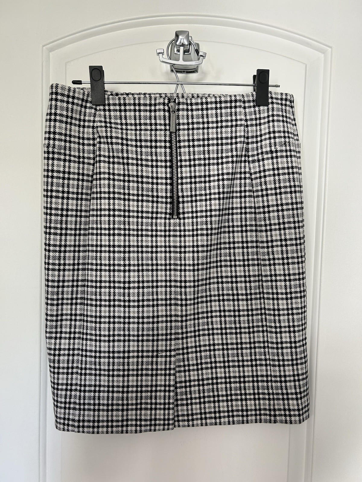 как выглядит Michael Kors Pencil Skirt Size Medium Houndstooth Black Bone Gray Stretch фото