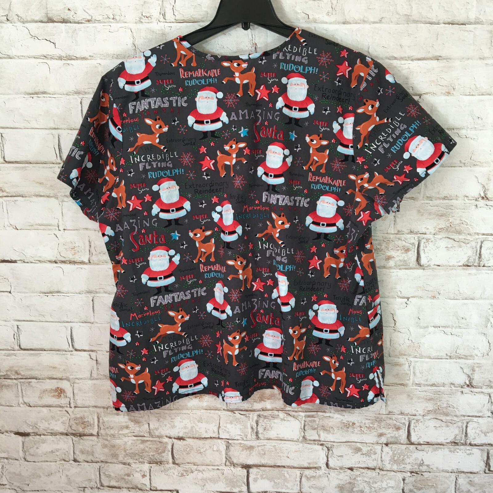 Rudolph The Red Nose Reindeer Scrub Top Womans 100 Cotton Christmas V Neck
