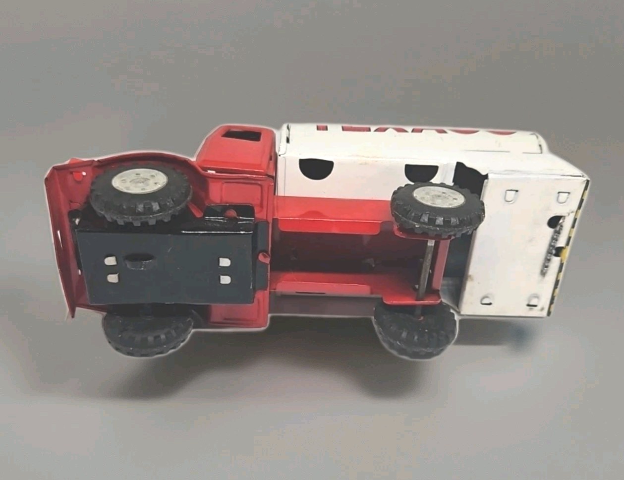Vintage RED AND WHITE TEXACO Tin Friction Tanker Truck S1149 Made In Japan MUSTC