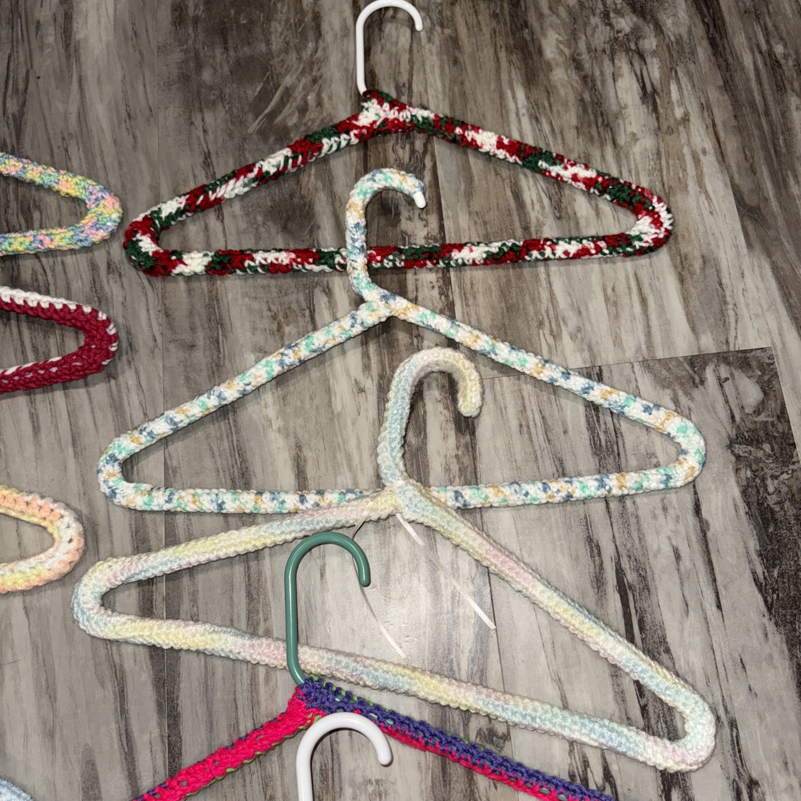 12 Vintage Retro handmade Yarn Crochet Plastic hangers Home Decor Organization