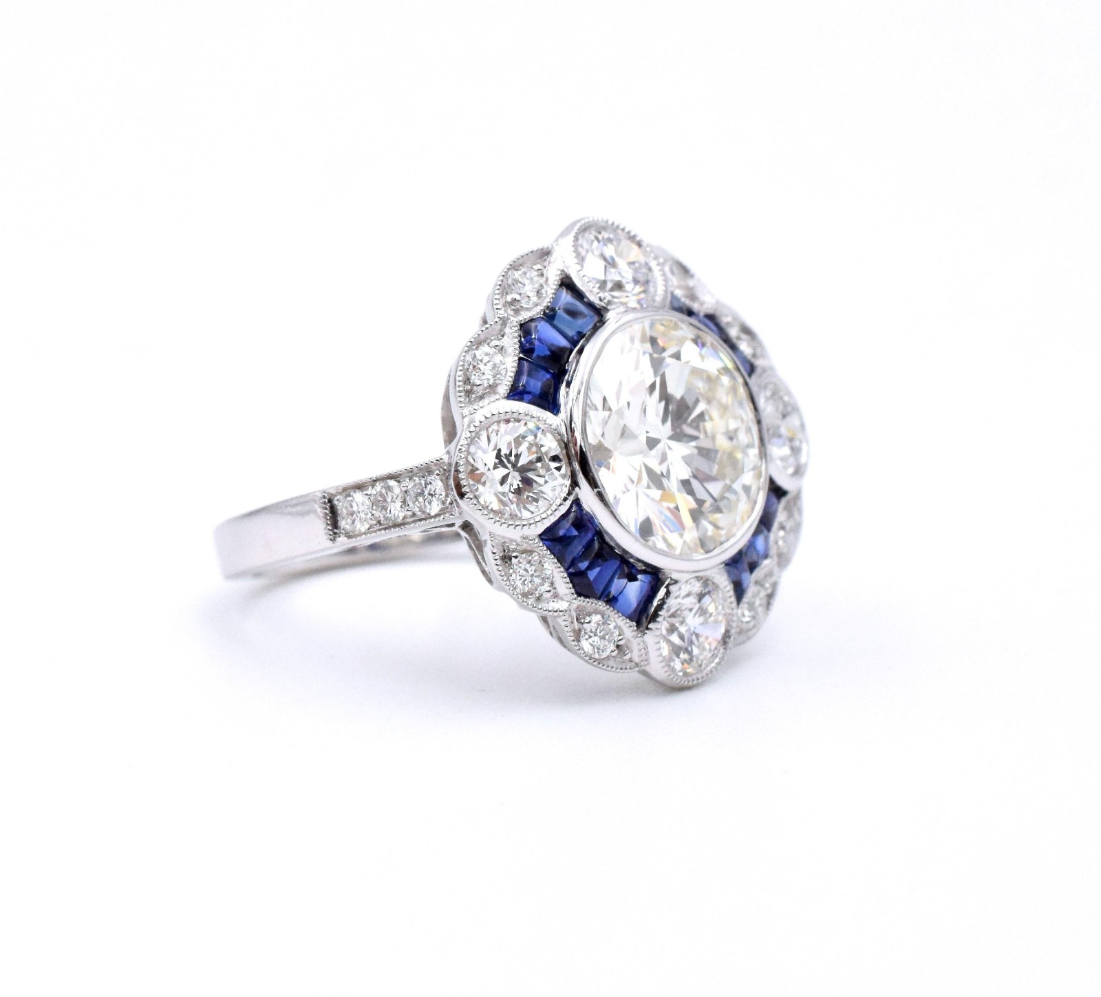 2Ct White Round Cut Bezel Set Art Deco Style Wedding Ring In 925 Sterling Silver