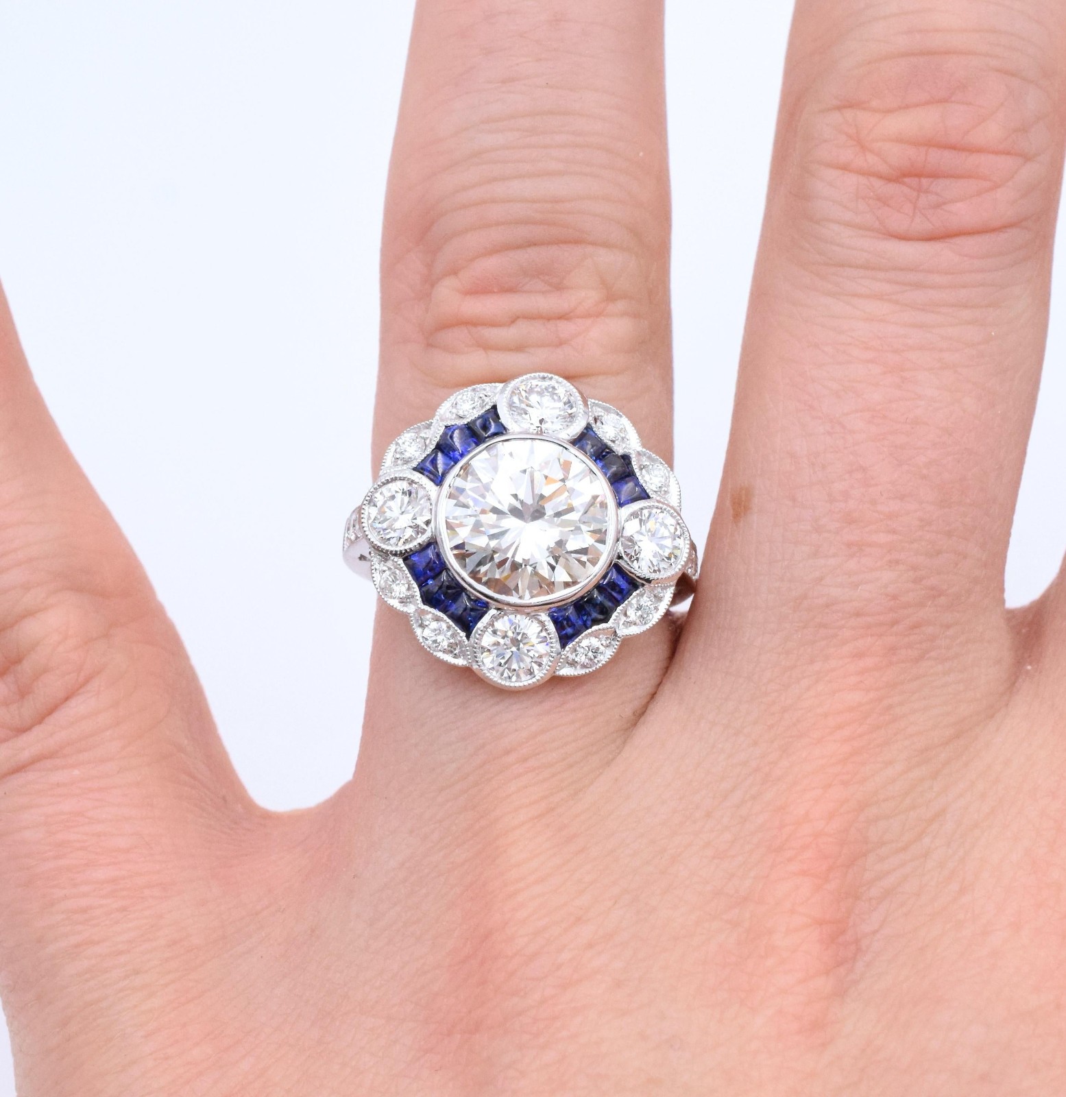 как выглядит 2Ct White Round Cut Bezel Set Art Deco Style Wedding Ring In 925 Sterling Silver фото