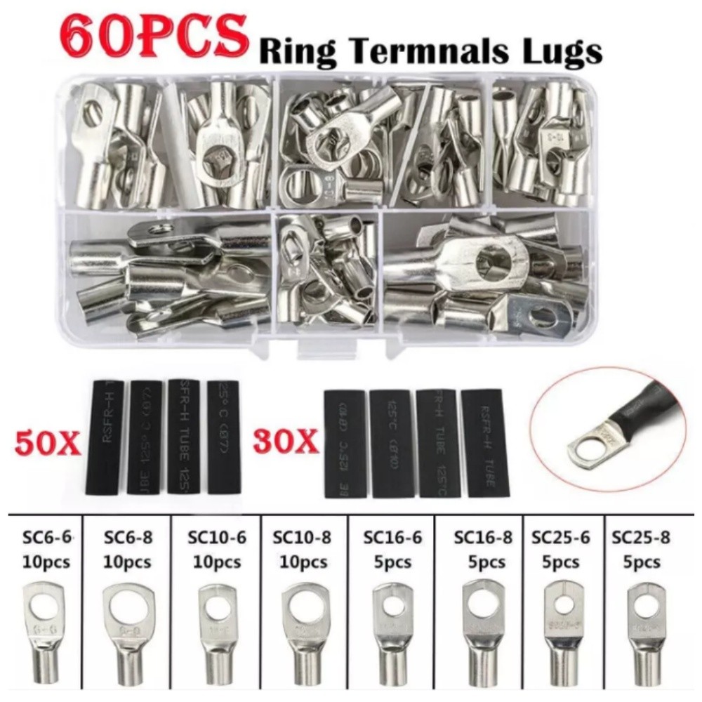 140PCS Copper Wire Ring Terminal Lug Bare SC Battery Welding Crimp Connector Set