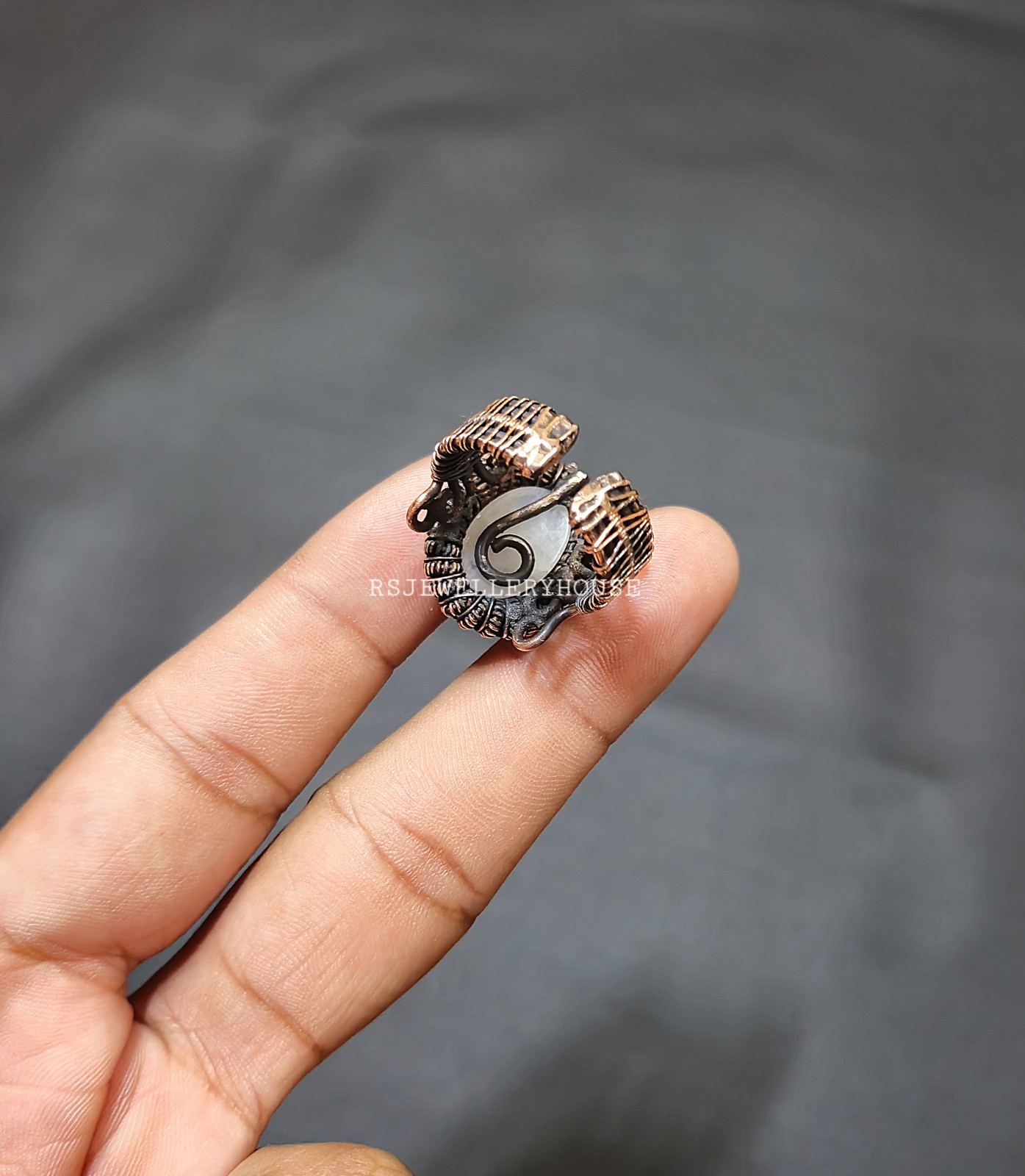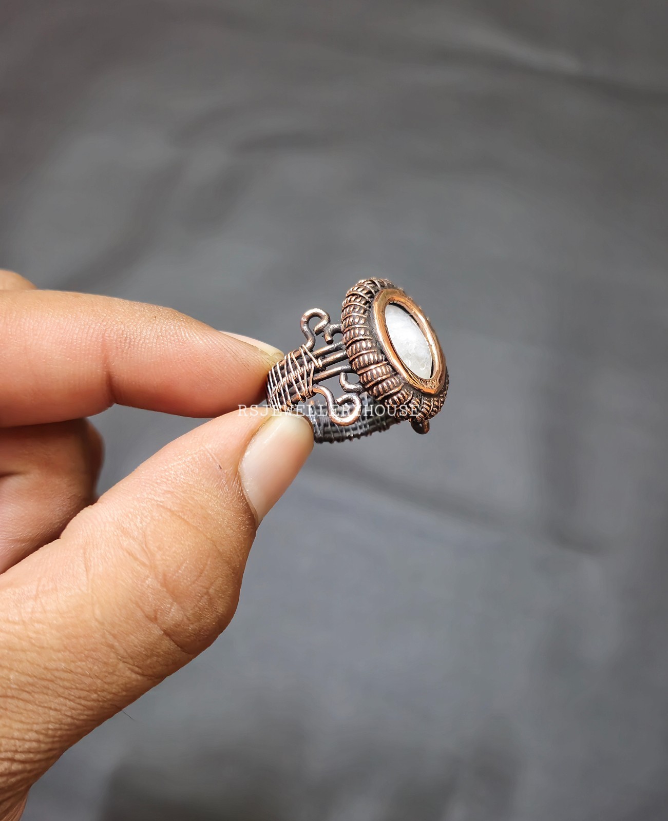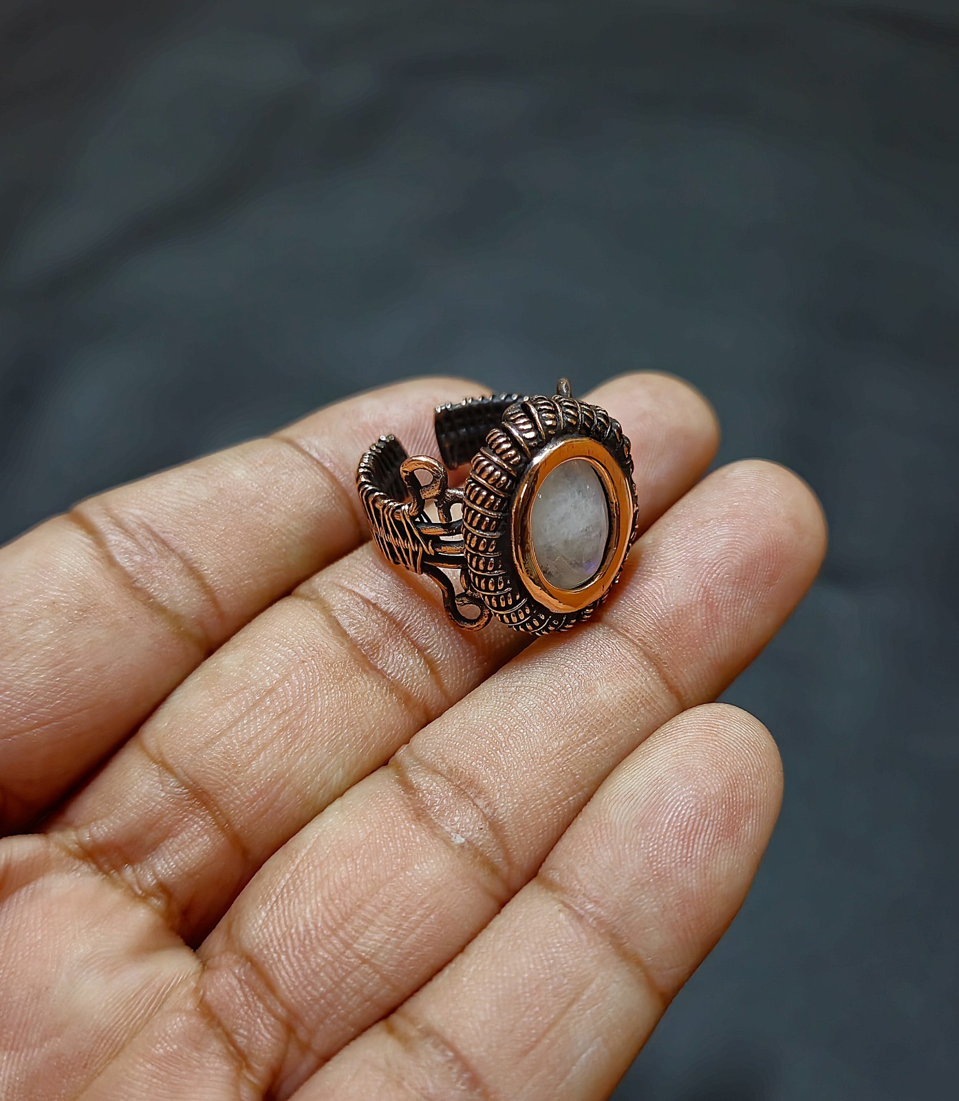как выглядит Rainbow Moonstone Ring Copper Wire Wrapped Ring Handmade Adjustable Gift Ring фото