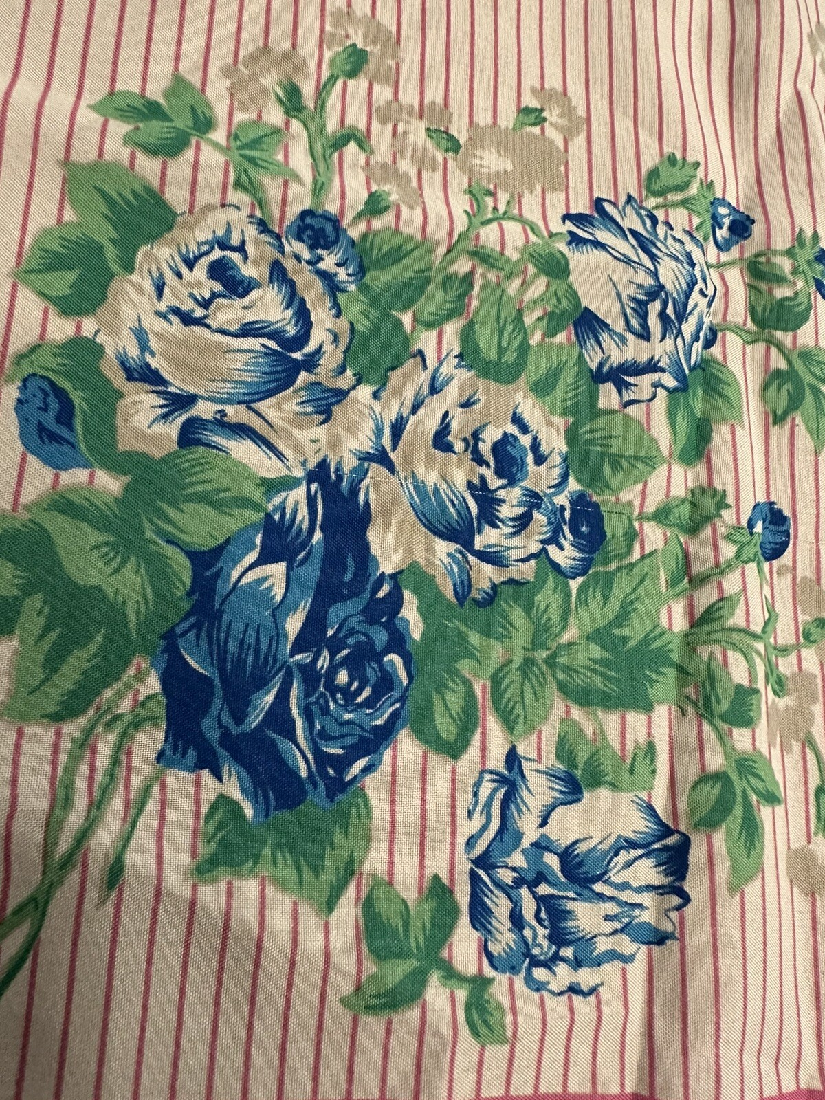 как выглядит Vintage Scarf Pink Border Stripes Blue Roses 30 x 31 фото