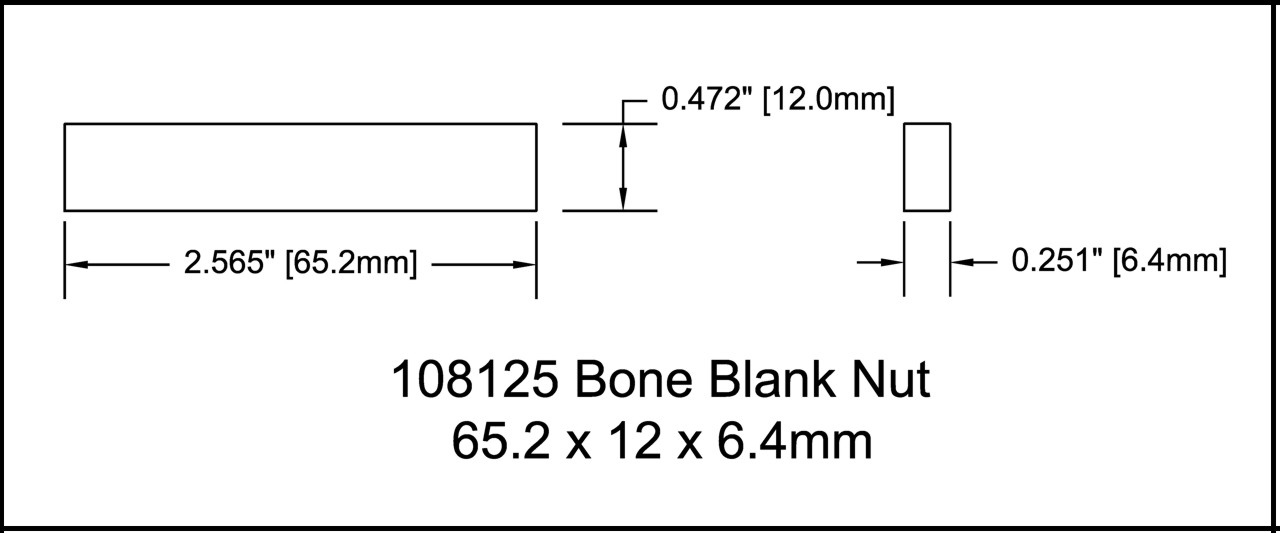 Nut Bone Blank Bleached Guitar Bass 65.2 x 12 x 6.4mm 108125