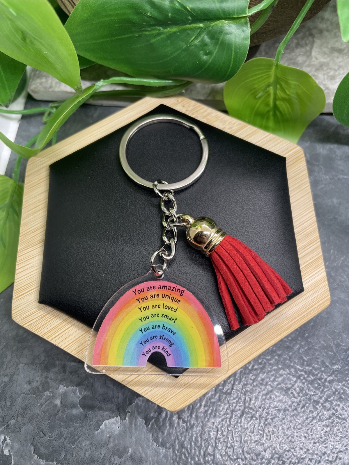 3.5 Silver-Tone You Are. . Acrylic Rainbow Tassel Keychain New Free Ship B7793
