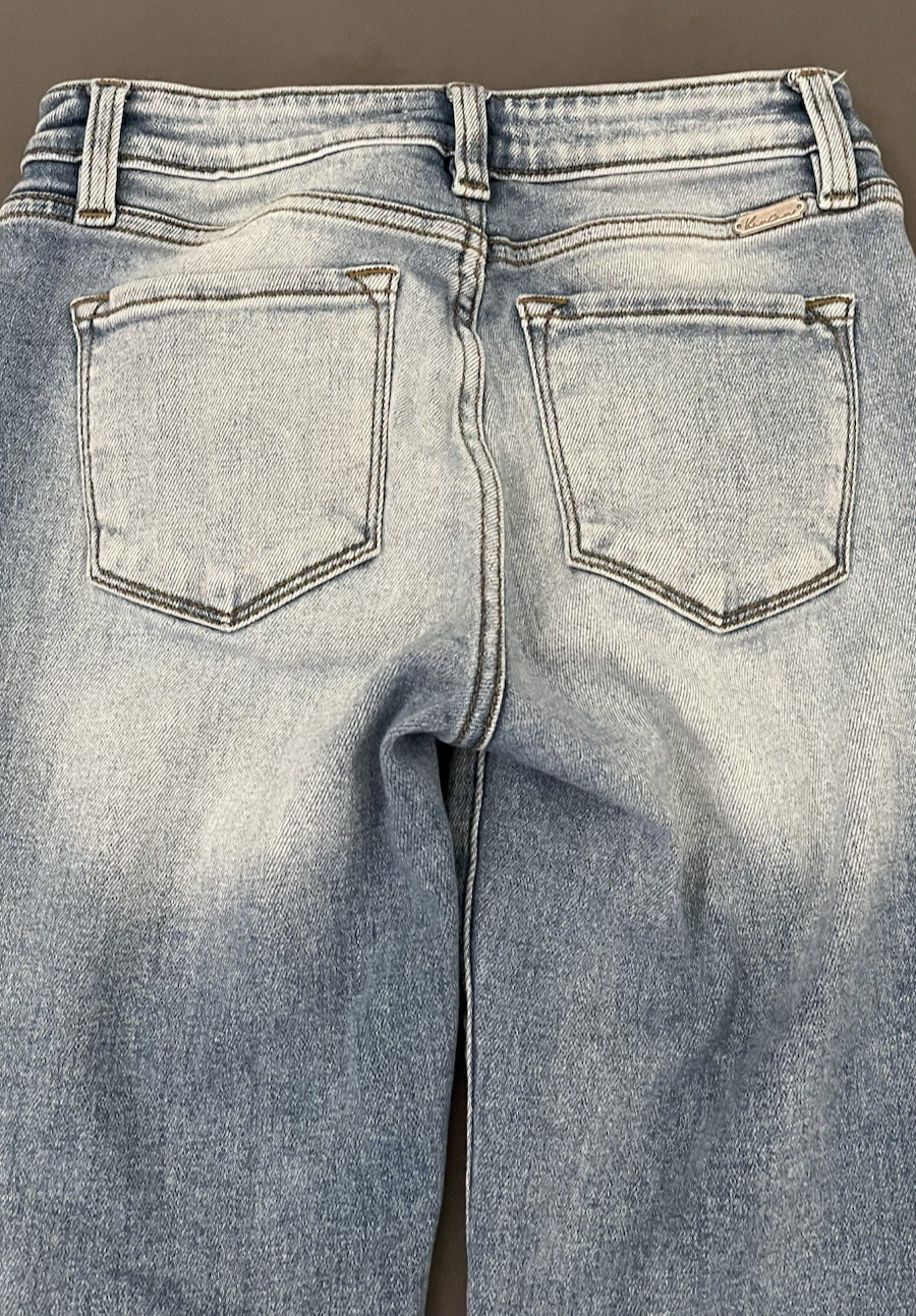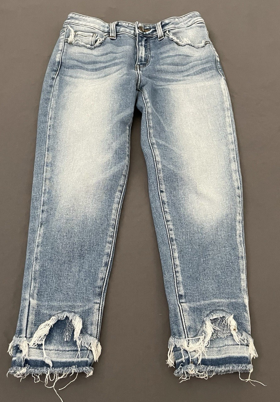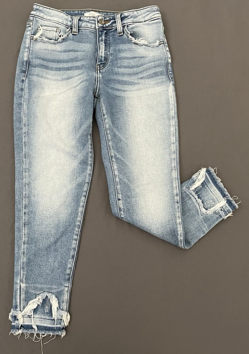 KanCan Distressed Raw Hem Mid Rise Skinny Cropped Jeans Womens 27 Light Wash