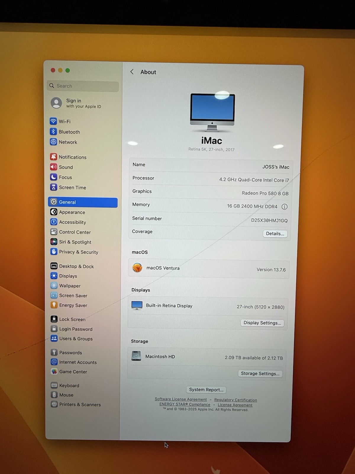 Apple iMac 27-inch I7 with 5K 2017 Ram 16gb SSD 2TB Screen Crack READ