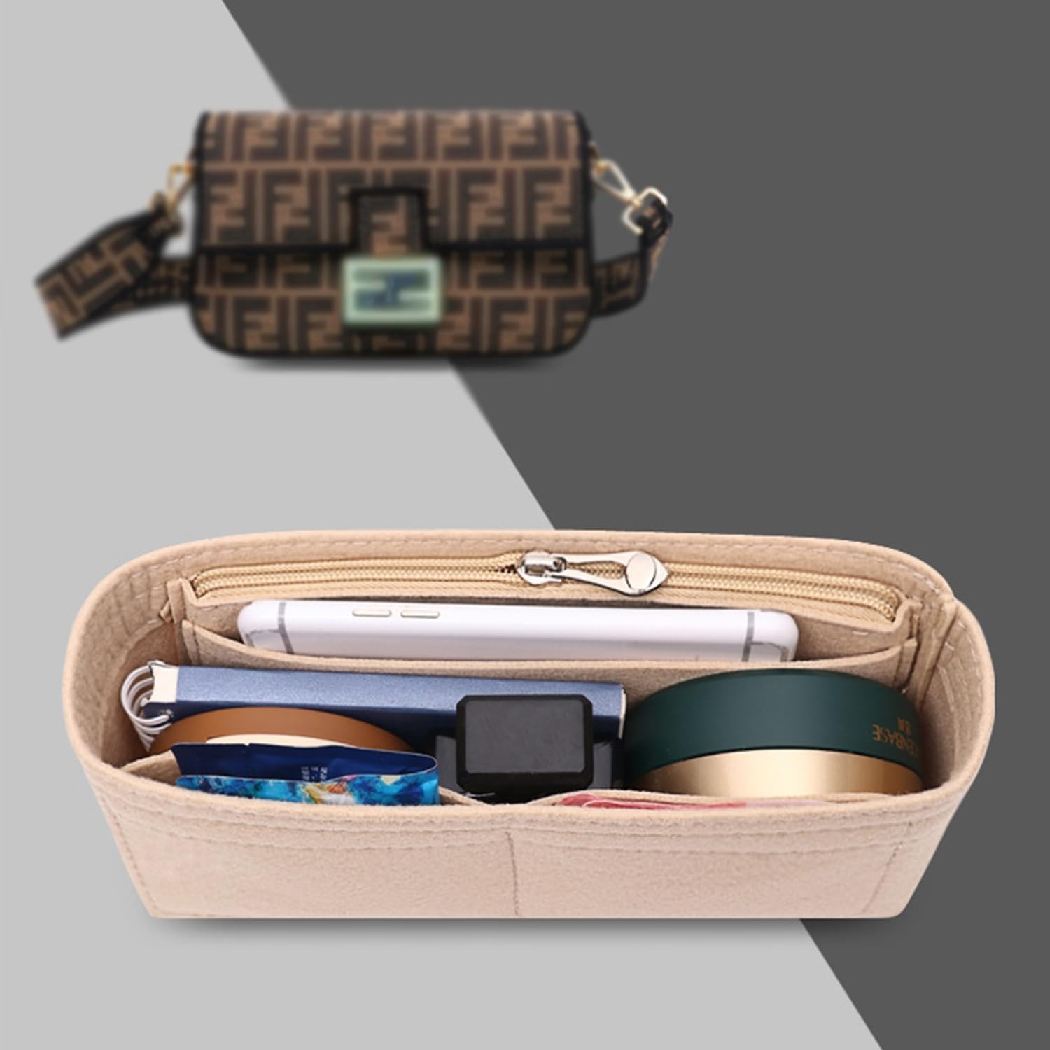 Purse Organizer Insert Felt Bag Organizer with Zipper for Baguette Small Purs...