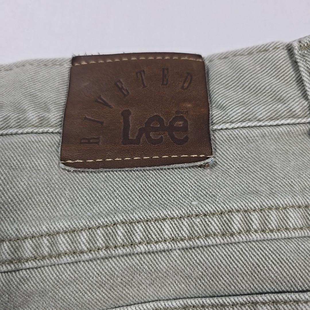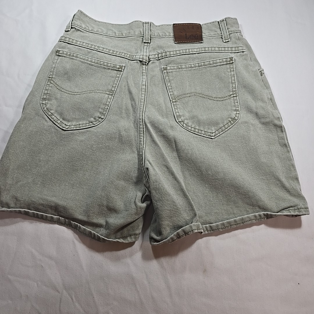 как выглядит Vtg 90s Lee Riveted Regular Fit Lt Green Denim Shorts Womens Sz 14M Khaki Green фото