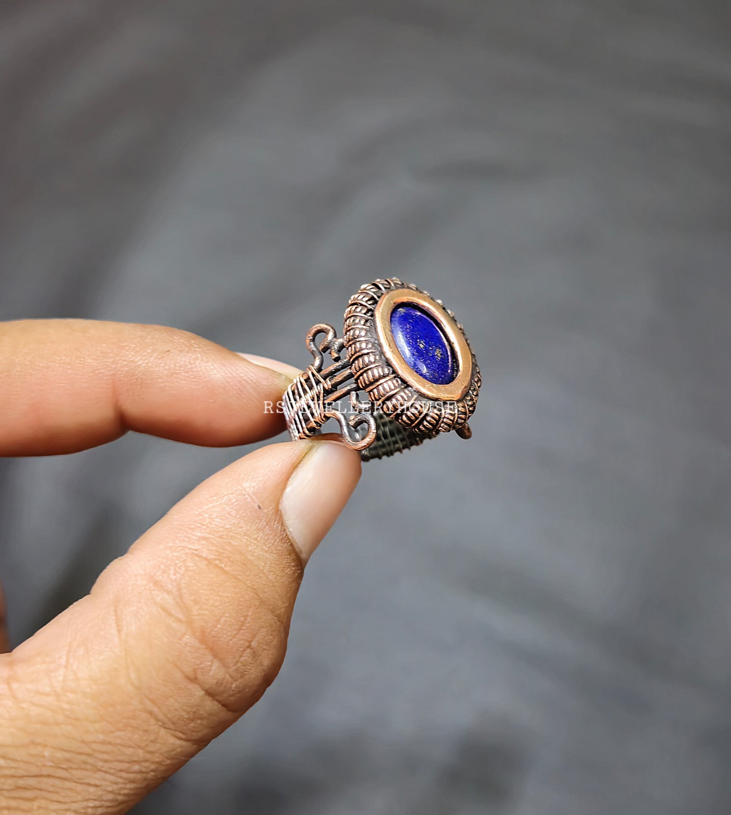 Lapis Lazuli Ring Copper Wire Wrapped Ring Adjustable Ring Copper Ring Gift