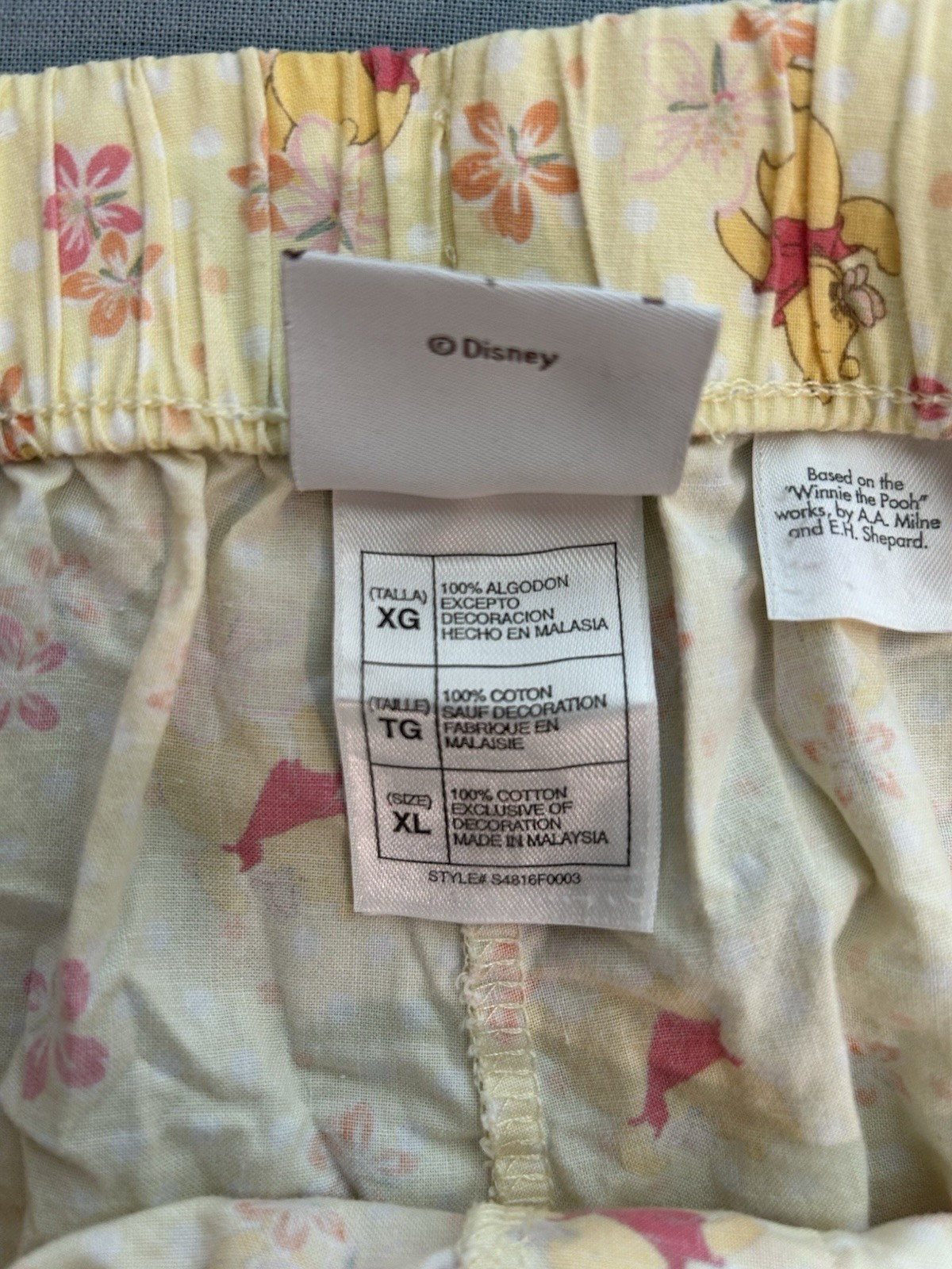 как выглядит Vintage Winnie The Pooh XL Pj Pants Capri Length Disney Store Yellow Peach Pooh фото