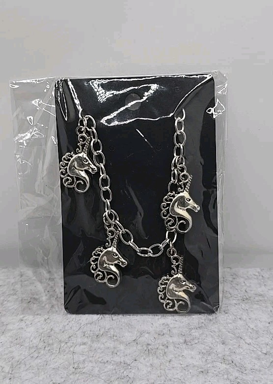 как выглядит Young Girls Unicorn Charm Chain Bracelet Silver Tone Toggle Closure Handmade фото