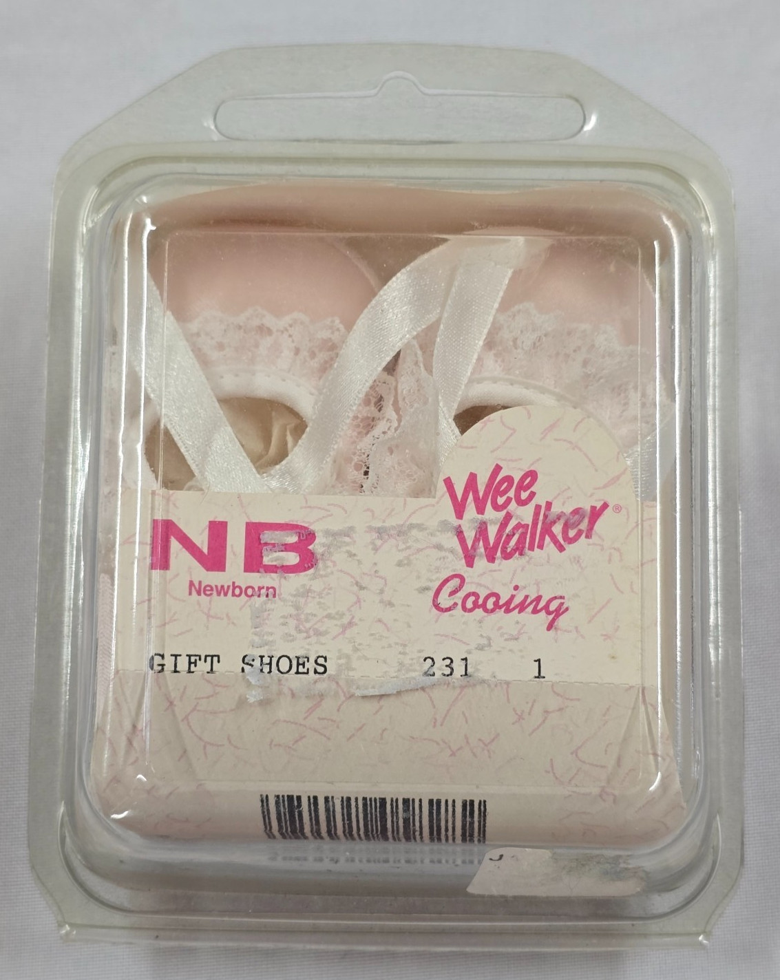 Vintage Baby Deer Crib Dress Shoes Girls Pink White Lace Booties Satin 0-3 NEW