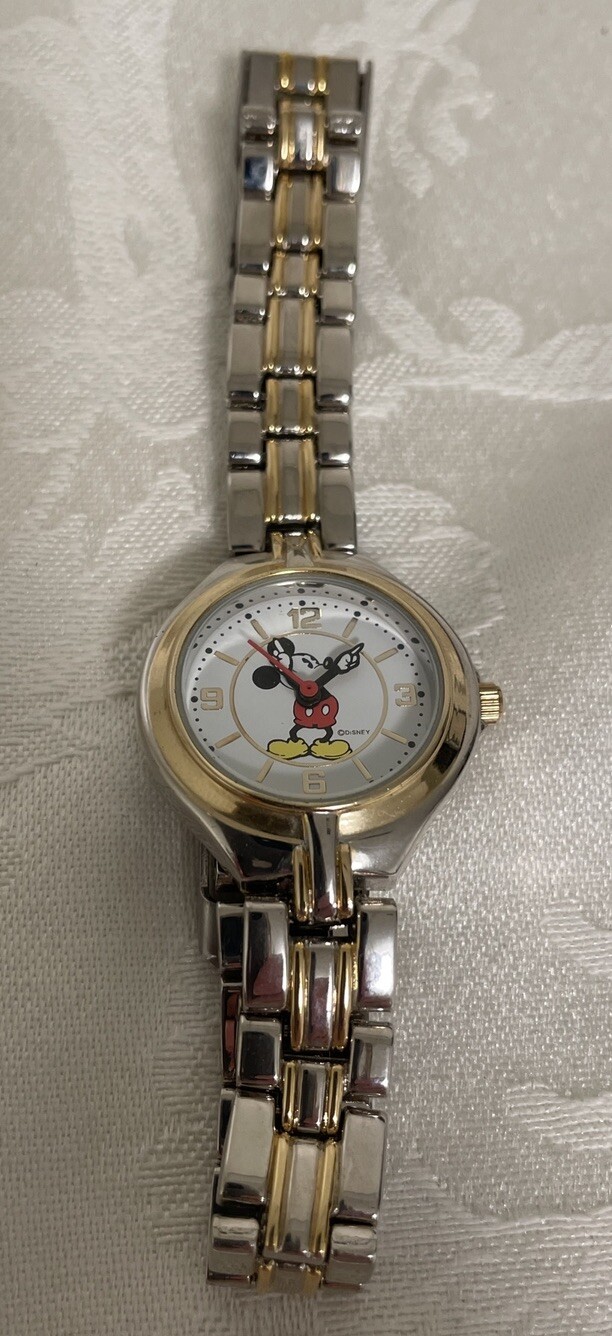 • Disney Mickey Mouse Bracelet Watch Silver Gold tone MCK87 Working