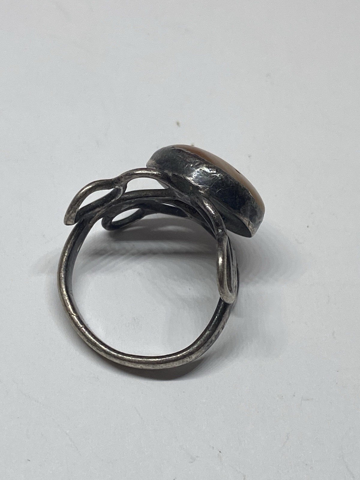 как выглядит SIZE 8 6.5g 925 STERLING SILVER AGATE OPEN WORK VINTAGE RING GEMSTONE фото