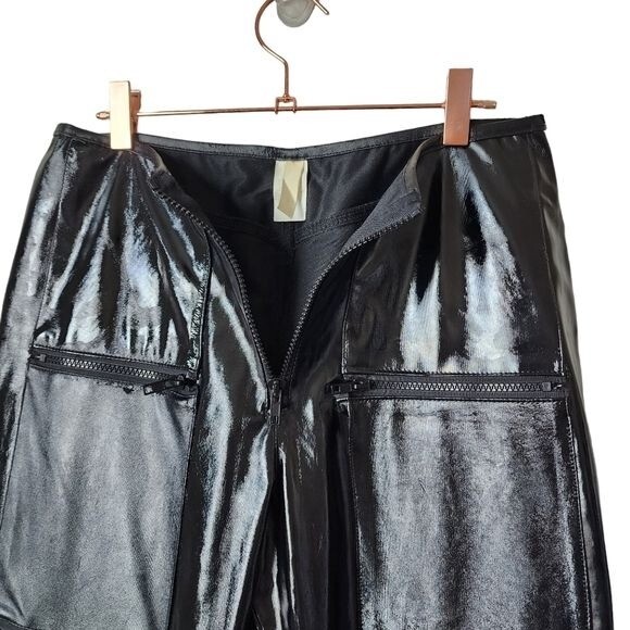как выглядит SUPER LOW FAT x VINTAGE 90s Mall Goth Faux Leather shiny black padded pants фото