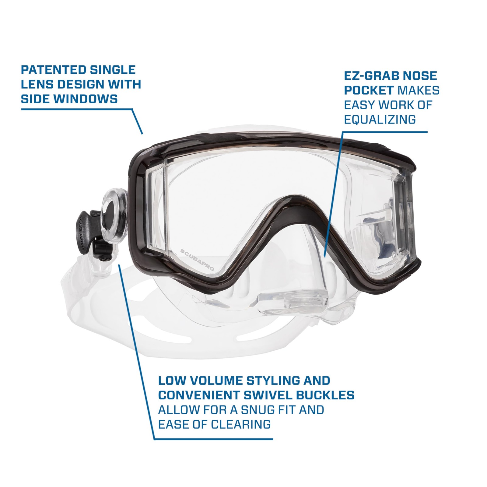 Scubapro Black Dive Mask Single Lens Seamless Side Windows Comfortable Fit