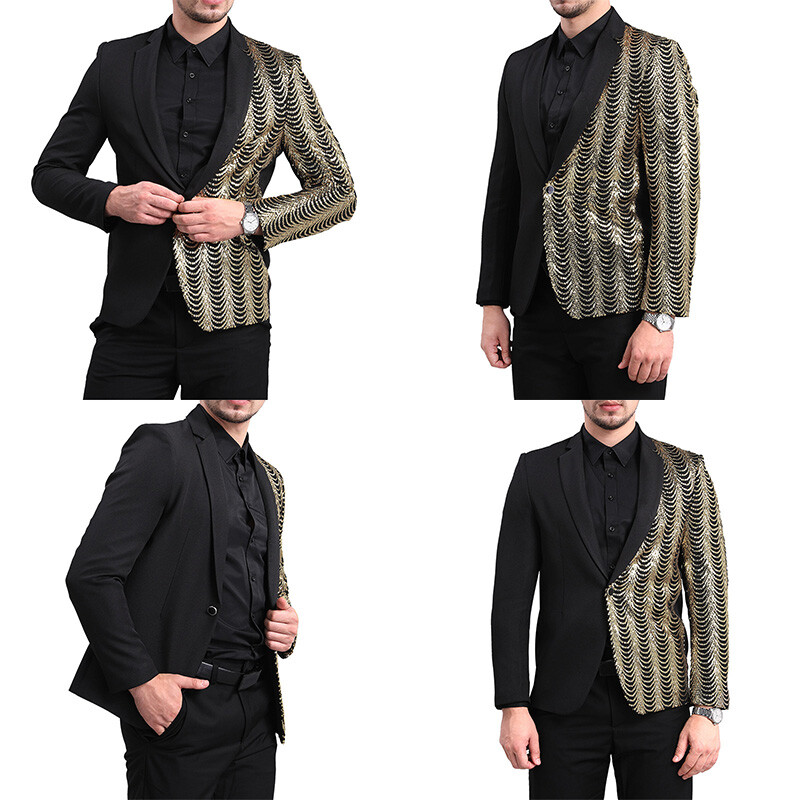 как выглядит Men Sequin Tuxedo Jacket Suit Blazer Coat Party Showman Costume Fancy Dress фото