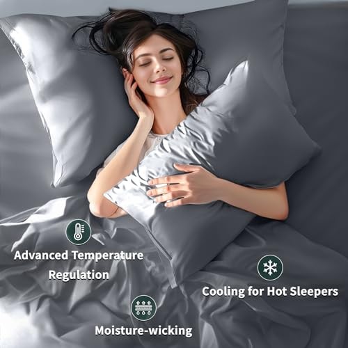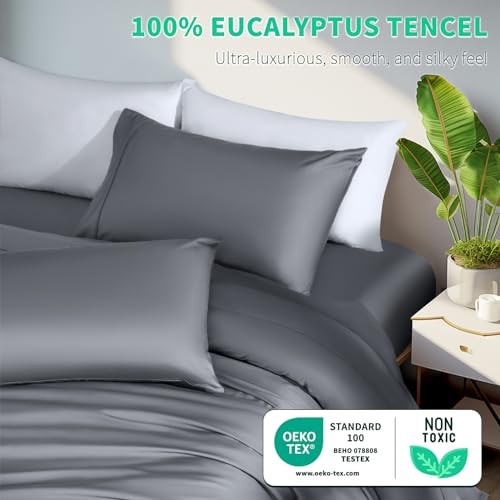 Tencel Sheets 4 Piece, 100 Eucalyptus Lyocell Sheets Set, Queen Dark Grey