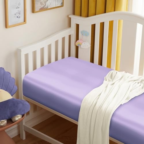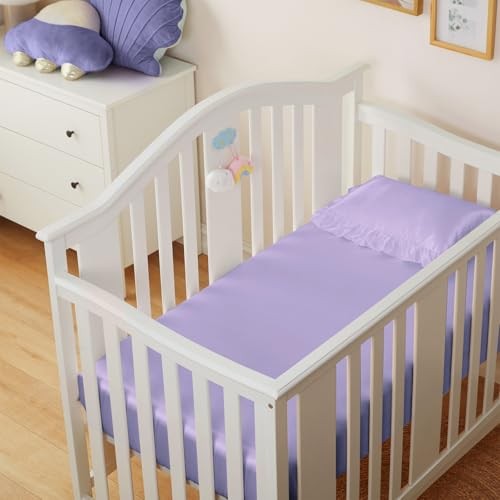 Satin Crib Sheets 2 Pack, 28 x 52 x 8 Inch Soft Fitted Crib Light Purple