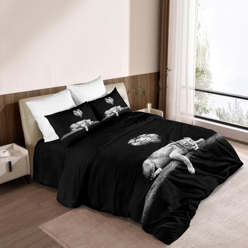 Lion Couple Duvet Cover Set with Pillow Shams Animal Lions Pattern Full Lion205